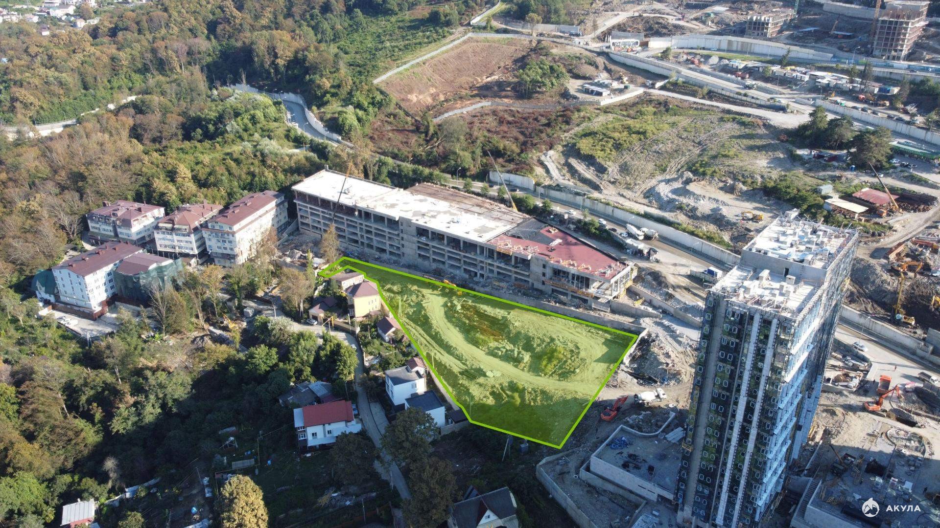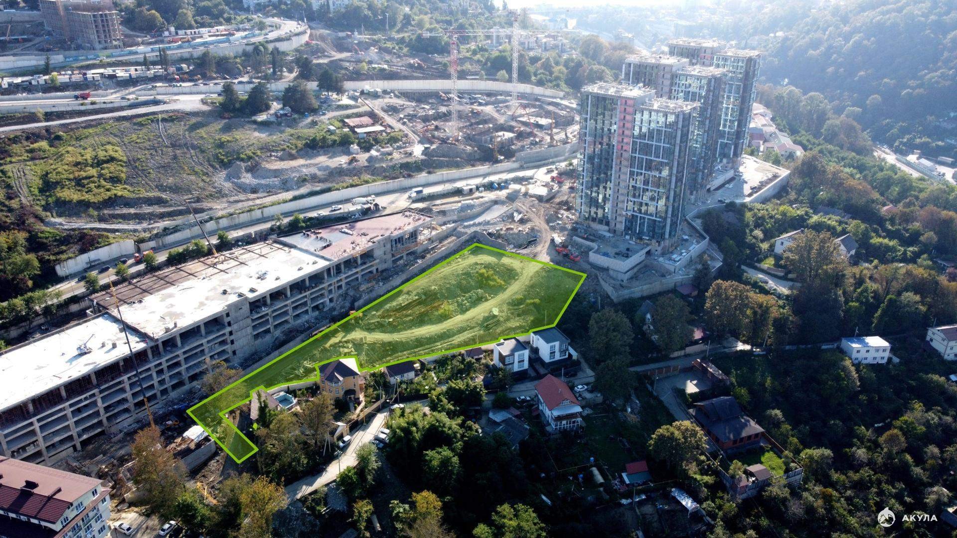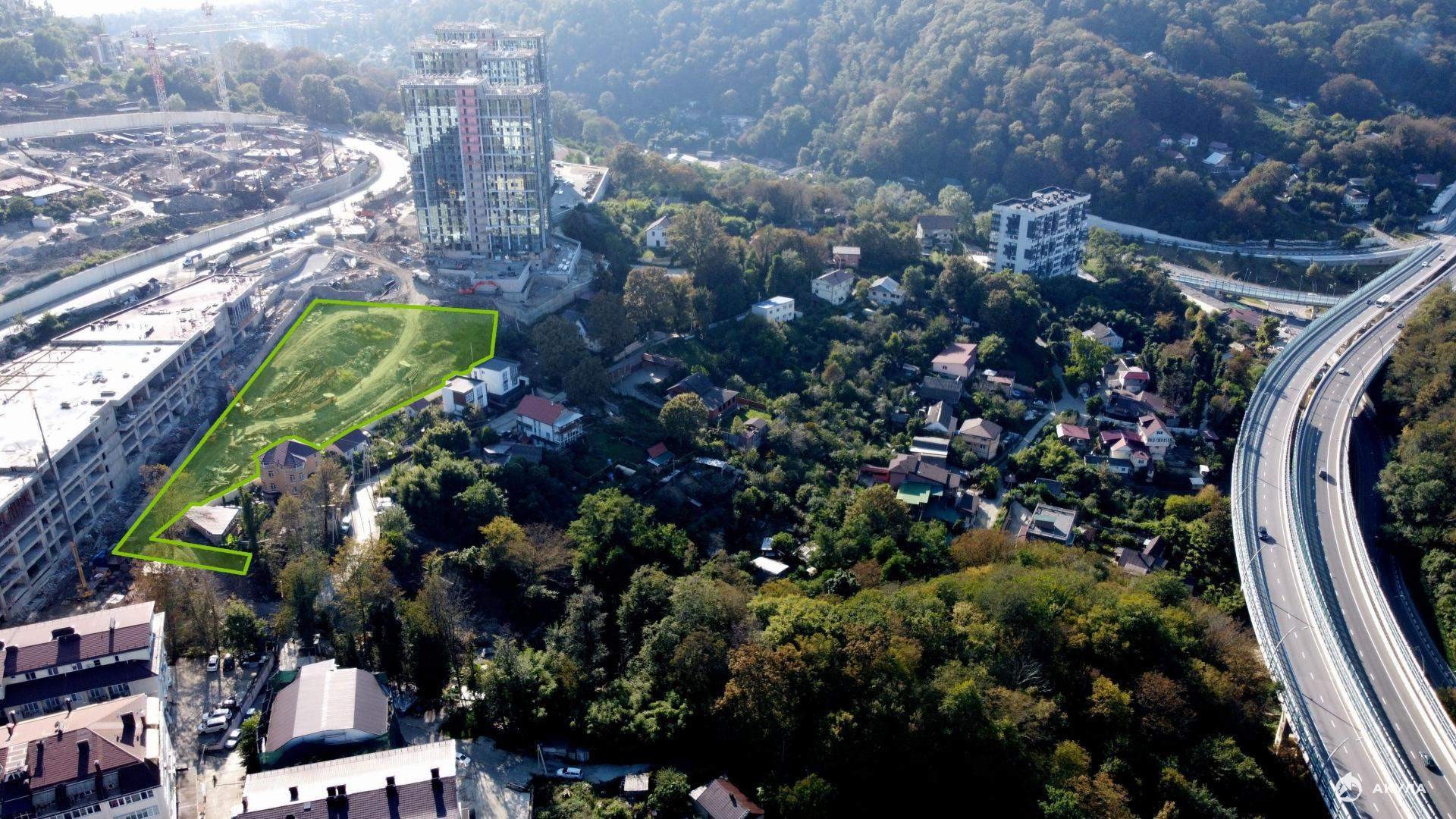 Земельный участок расположен в районе с развитой инфраструктурой - между торговым центром "Сочи Парк" и новым жилым комплексом, что делает его наиболее подходящим для строительства общественно-делового центра.