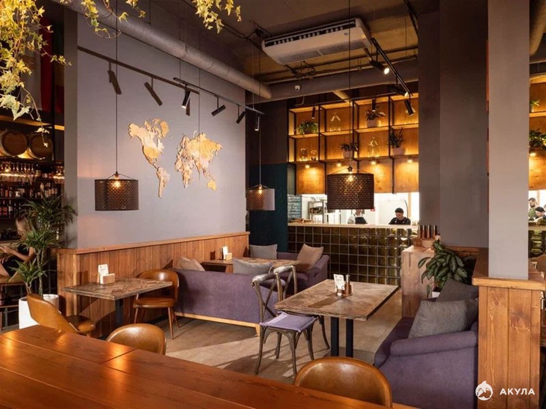 Площадь 296, 7м2., летняя веранда 67м2. Все коммуникации : электроснабжение 105 кВт, приточная -вытяжная система 4000 м3, водоснабжение-водоотведение , кондиционирование, слаботочка. Укомплектован кухонным оборудованием, мебелью внутри и на летней веранде, смонтированы каркасы наружной рекламы с подведение электроснабжения. Всё сделано качественно , по проектам .