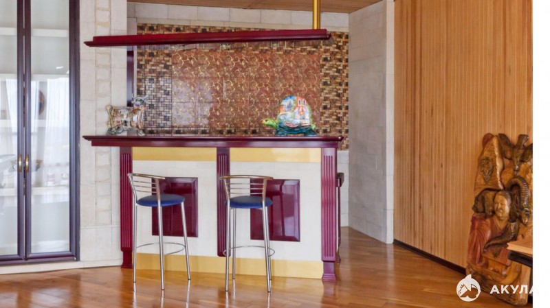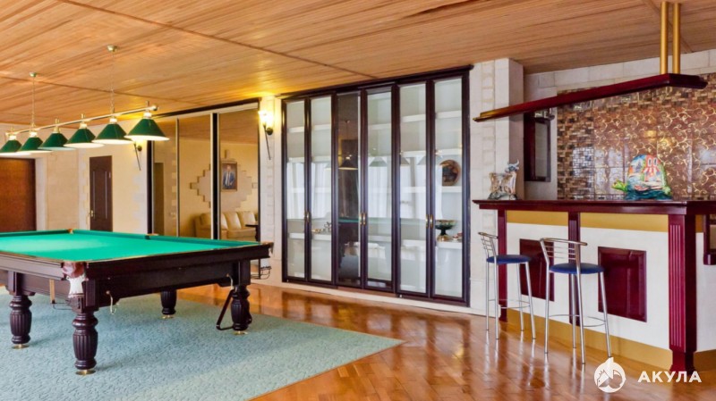 Собственный бассейн, баня, зона отдыха, два подземных паркинга, бильярдная, бар, большая джакузи на террасе четвёртого этажа.