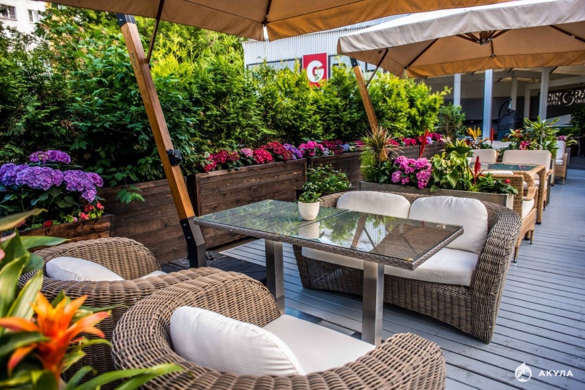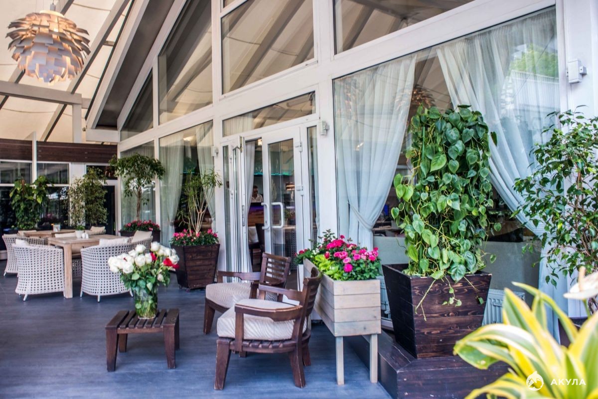 Зимний зал на 100 посадочных мест и летняя терраса с беседками на 250 посадочных мест .