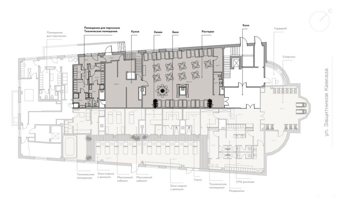 - технические помещения персонала ресторана с раздевалками и душевыми;