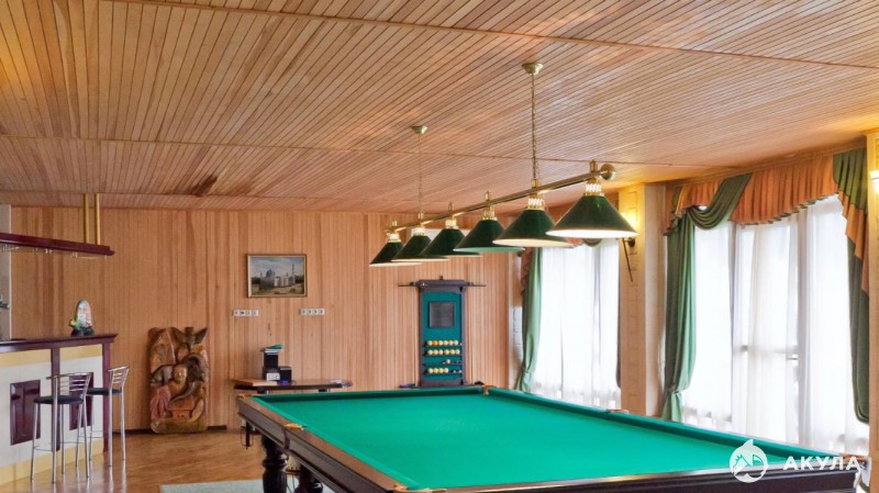 Собственный бассейн, баня, зона отдыха, два подземных паркинга, бильярдная, бар, большая джакузи на террасе четвёртого этажа.
