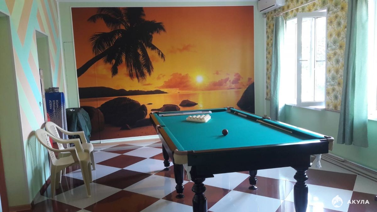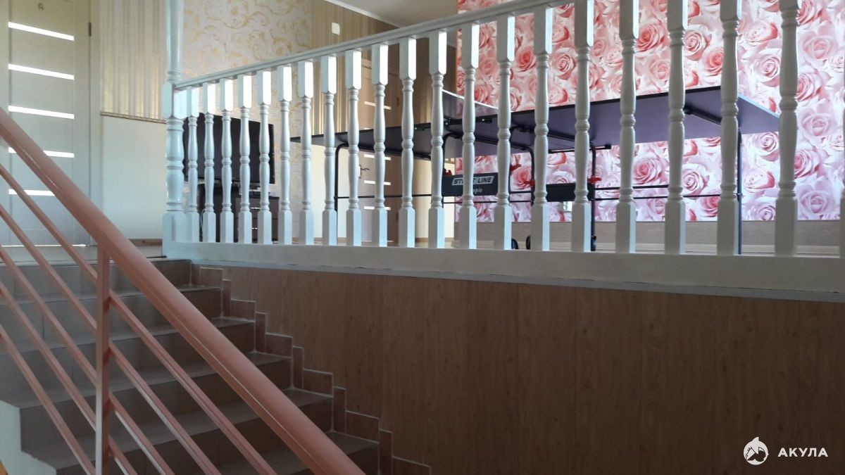 1 этаж - кухня-гостиная, комната для управляющего, бильярдная, баня, душ, туалет, постирочная, теннисный стол.