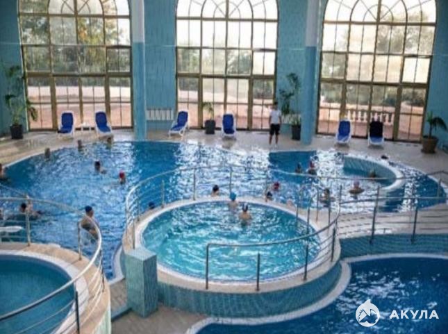 Крытый плавательный бассейн c чистой морской водой, которая ежедневно фильтруется и очищается. Развлекательный комплекс со столовой состоит из 2-х обеденных залов на первом и втором этажах, на 120 и 80 человек.