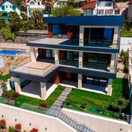 Эксклюзивная вилла в стиле “high-tech” с панорамным видом на море. На придомовой территории располагается : зона отдыха, бассейн, барбекю. Планировка: 1-ый этаж: просторная кухня-гостиная, гардеробная комната, совмещенный санузел. 2-ой этаж: большая спальня, две детские спальни,...