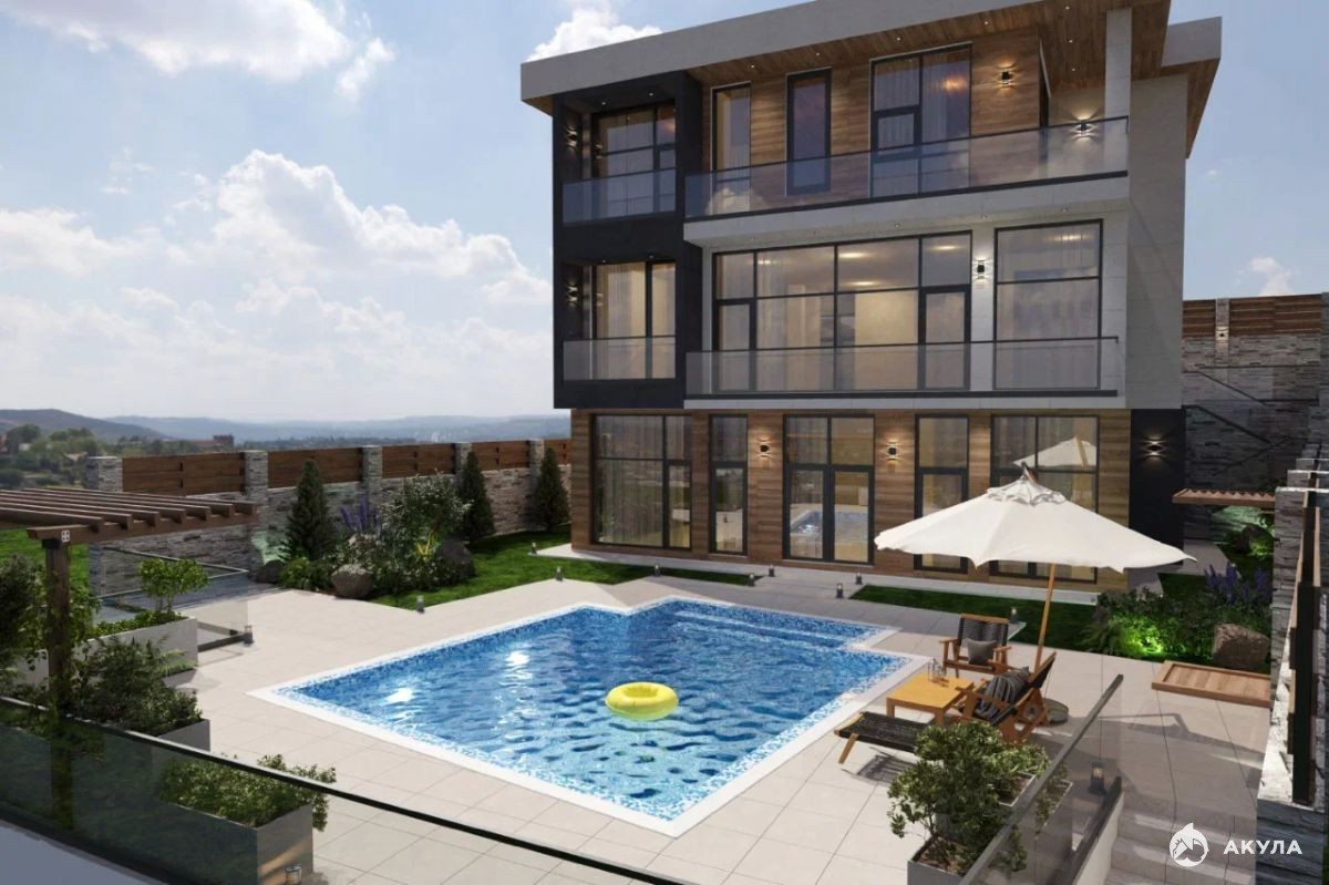 Территория с ландшафтным дизайном, на территории переливной бассейн с подогревом и современной системой очистки воды, зона барбекю, паркинг на 3 а/машины. Участок ровный, в собственности.