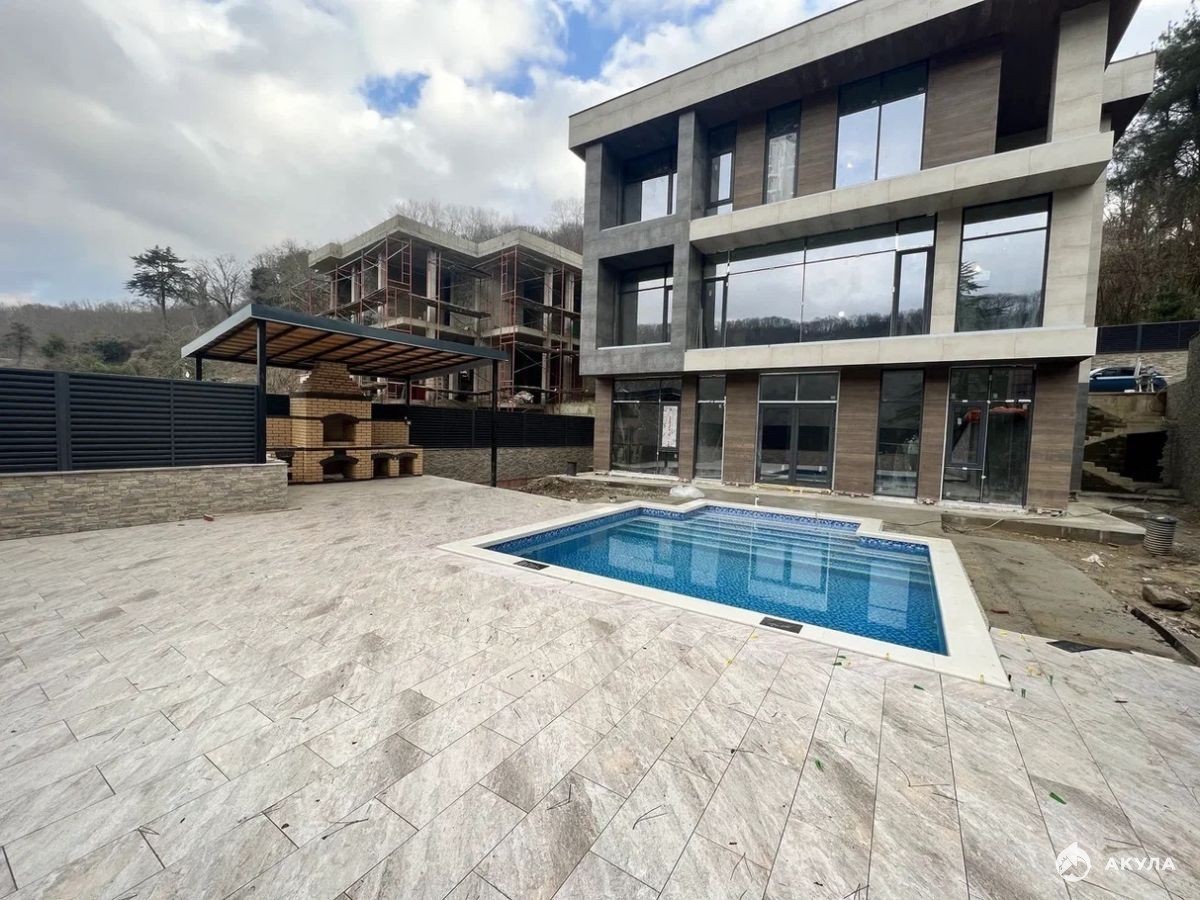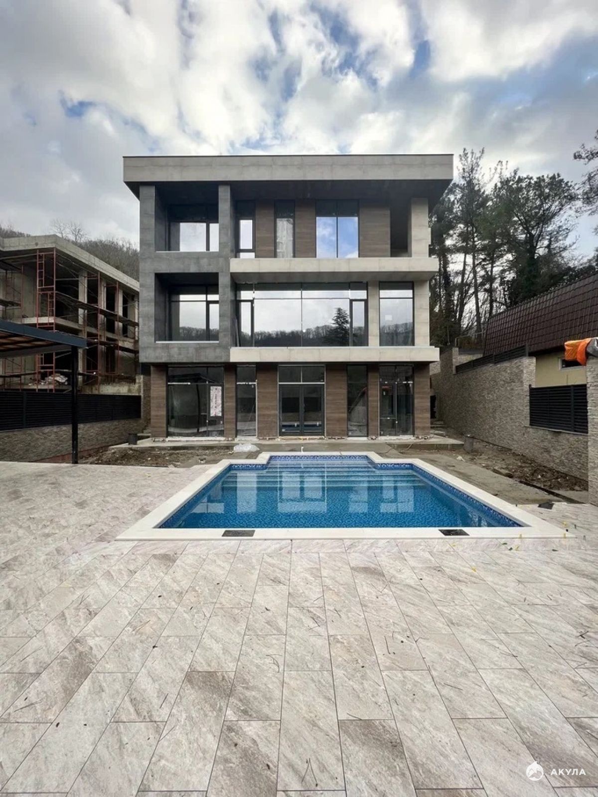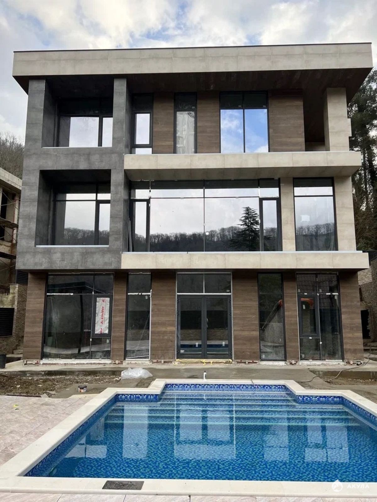 Продаю коттедж в стиле хайтек в красивом месте Сочи. Дом монолитно-каркасный с блочным заполнением. Фасад дома облицован керамогранитом, окна из алюминиевого профиля.