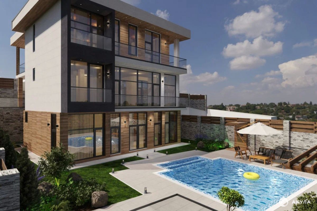 Коммуникации: вода центральная, свет 15кВт, газ, канализация - ЛОС. Планировка: на первом этаже гостевая комната с кухонной зоной и с/у, диванная комната с выходом на бассейн, тренажерный зал, сауна с комнатой отдыха и с/у, постирочная. Второй этаж: кухня, столовая, гостиная с выходом на большую террасу, гостевой с/у, гардеробная. Третий этаж: три спальни, каждая с гардеробной, балконом и свои санузлом.