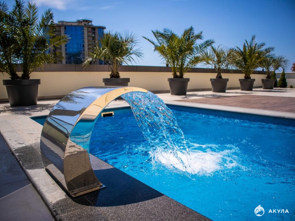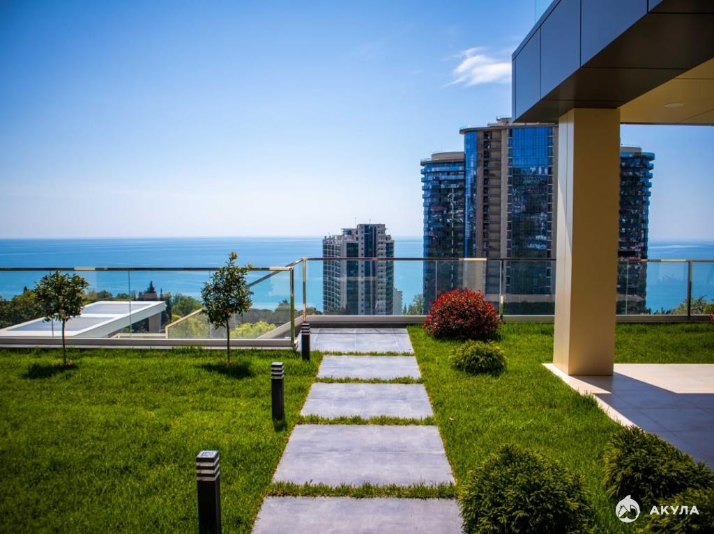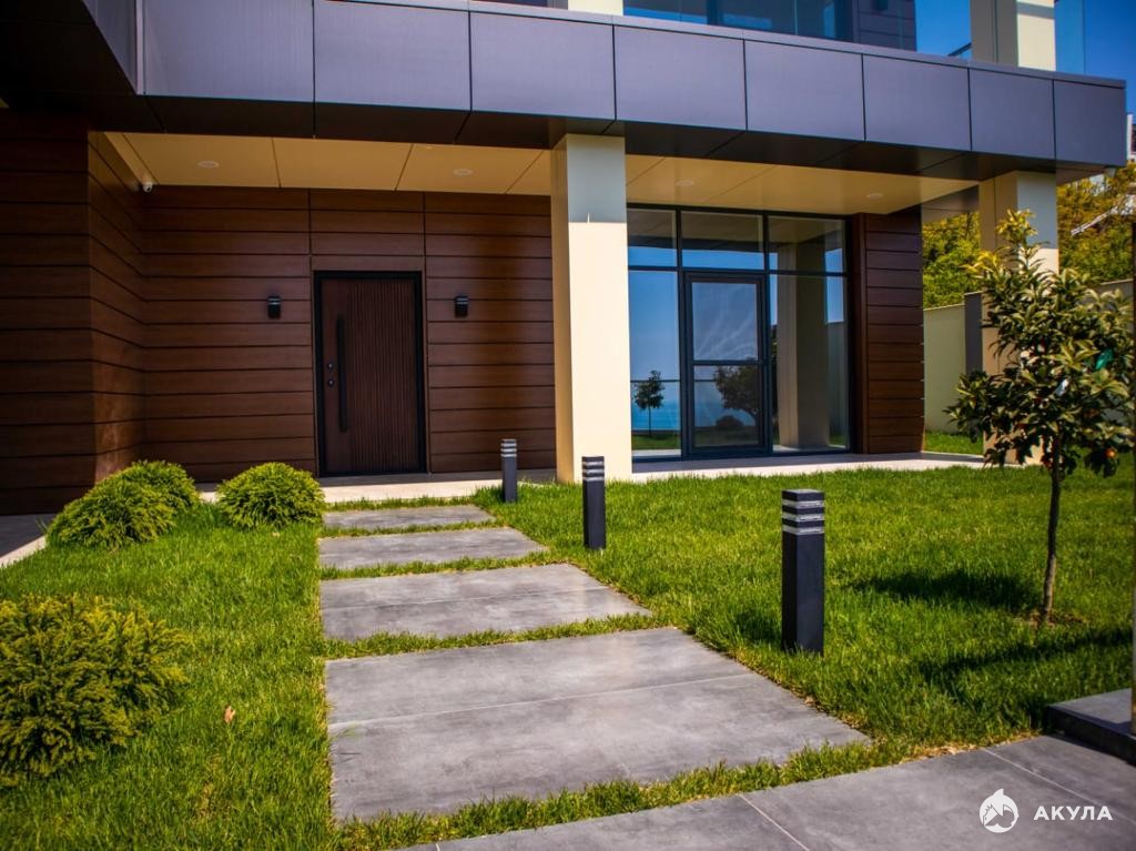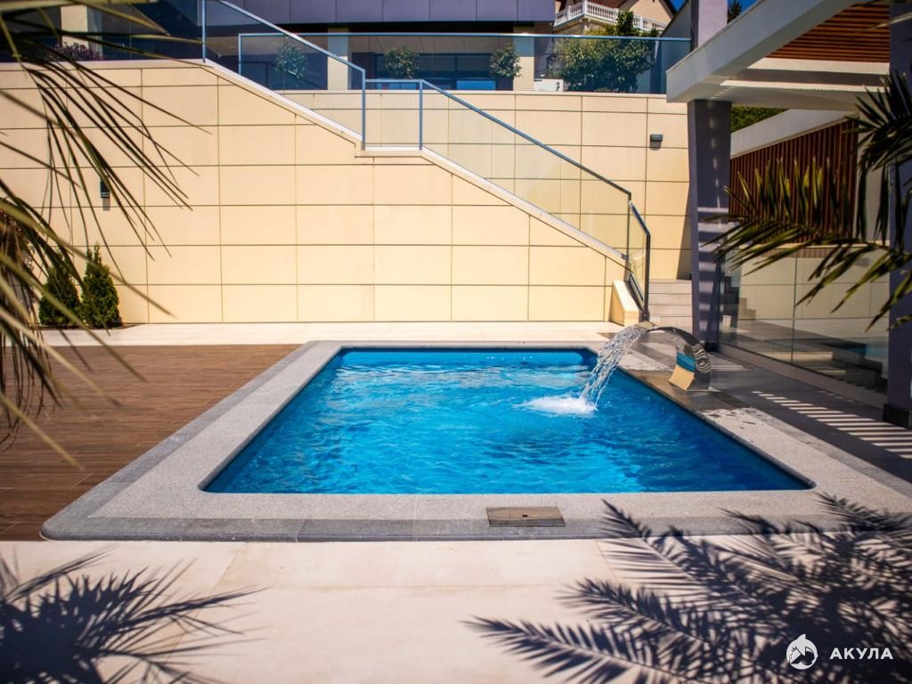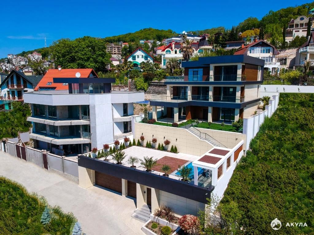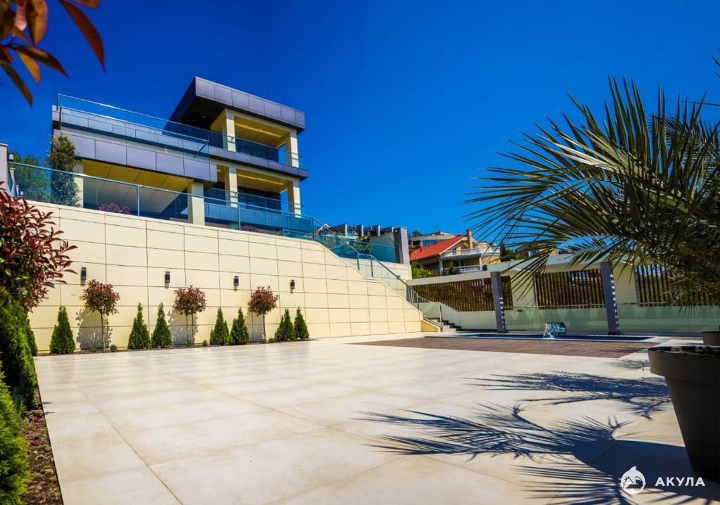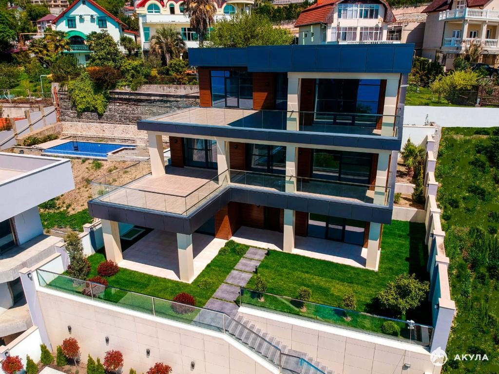 С террас нашей виллы можно любоваться панорамным видим на море, наслаждаться лучами южного солнца и дуновением морского, ласкающего ветерка. Есть зоны отдыха в тени которых можно укрыться от палящего солнца. На участке разбит сад с газоном и тропическими растениями, бассейн с подогревом воды . Общая площадь участка 7 соток.