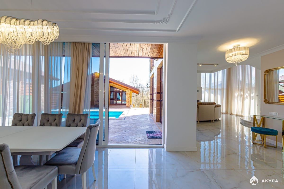 2-ой: хозяйский дом (296.1м.кв), гостевой дом (64м.кв), бассейн (8*4*1.5) с подогревом и подсветкой, большая просторная зона барбекю: тандыр, мангал, газовая плита.