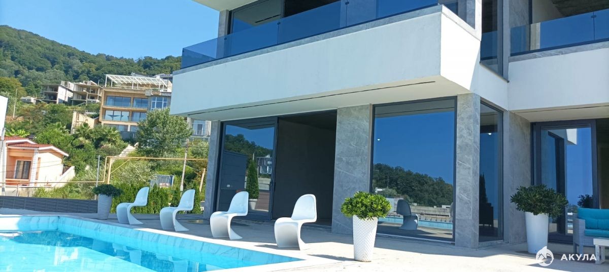 Вашему вниманию предлагается элитный коттедж в Сочи в п. Хоста, на ул. Ручей Видный. Коттедж площадью 450 кв.м. в стиле high-tech на земельном участке площадью 7соток.