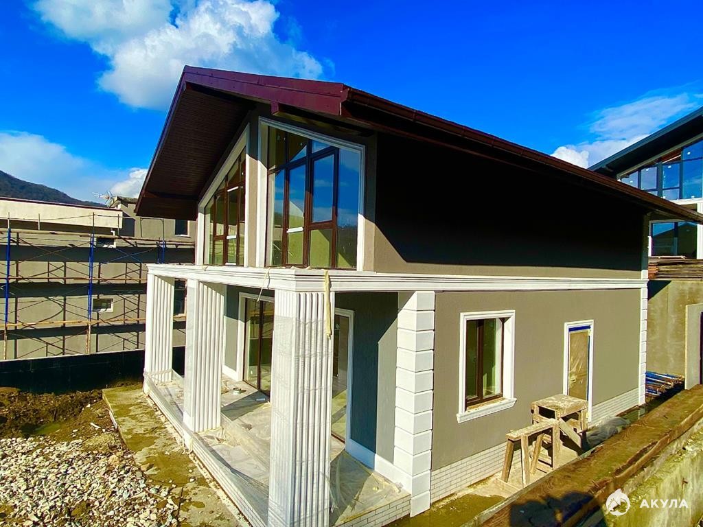 Утепленный фасад с отделкой декоративной штукатуркой с элементами декора. Панорамные окна, из которых открывается шикарный вид на море, горы и тисо-самшитовую рощу. Отделка предчистовая.