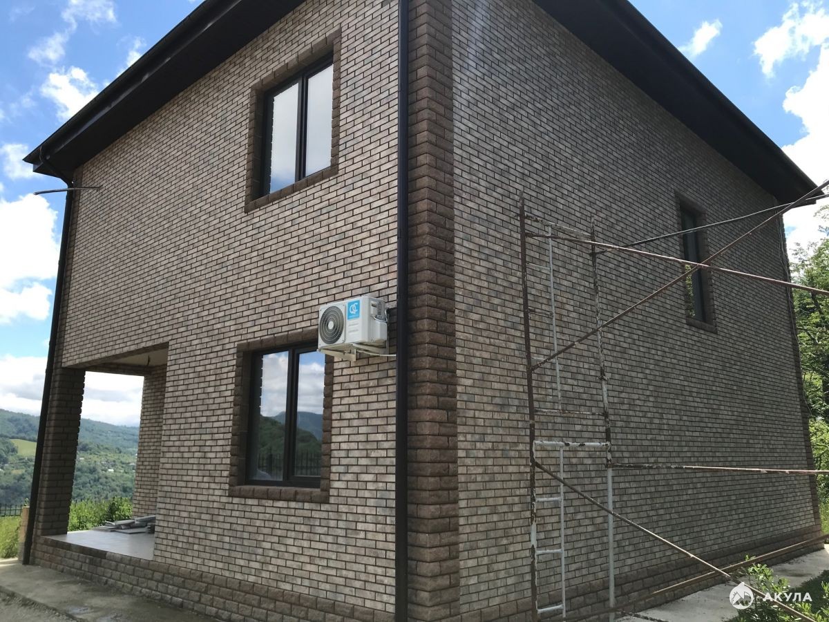 Общая площадь застройки составляет 90 соток. Коттедж построен по монолитной технологии с заполнением керамзитного блока и утеплением мин. ватой 50 мм., наружная отделка выполнена из керамогранита (клинкерная плитка), внутренняя отделка предчистовая (штукатурка, шпаклевка, разводка: электрики, ТВ, интернета, сантехники), смонтированы теплые полы по всей площади первого этажа, на втором этаже в с/у, радиаторы отопления в жилых комнатах, фундамент - плита 50 см.