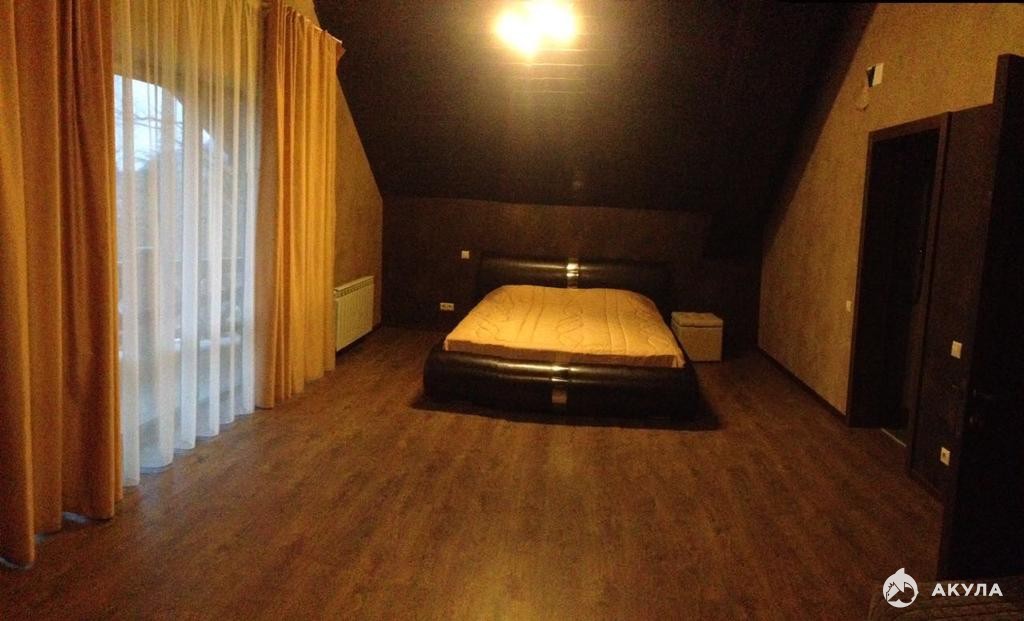 -мастер — спальня, панорамное остекление . Терраса с видом на горы.