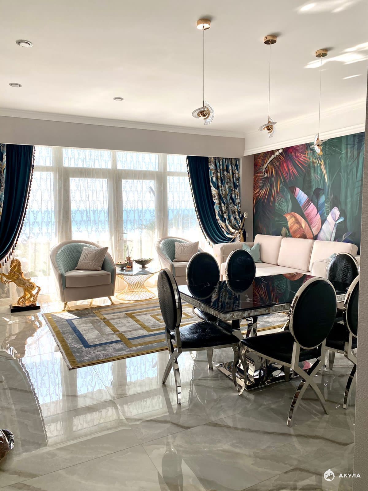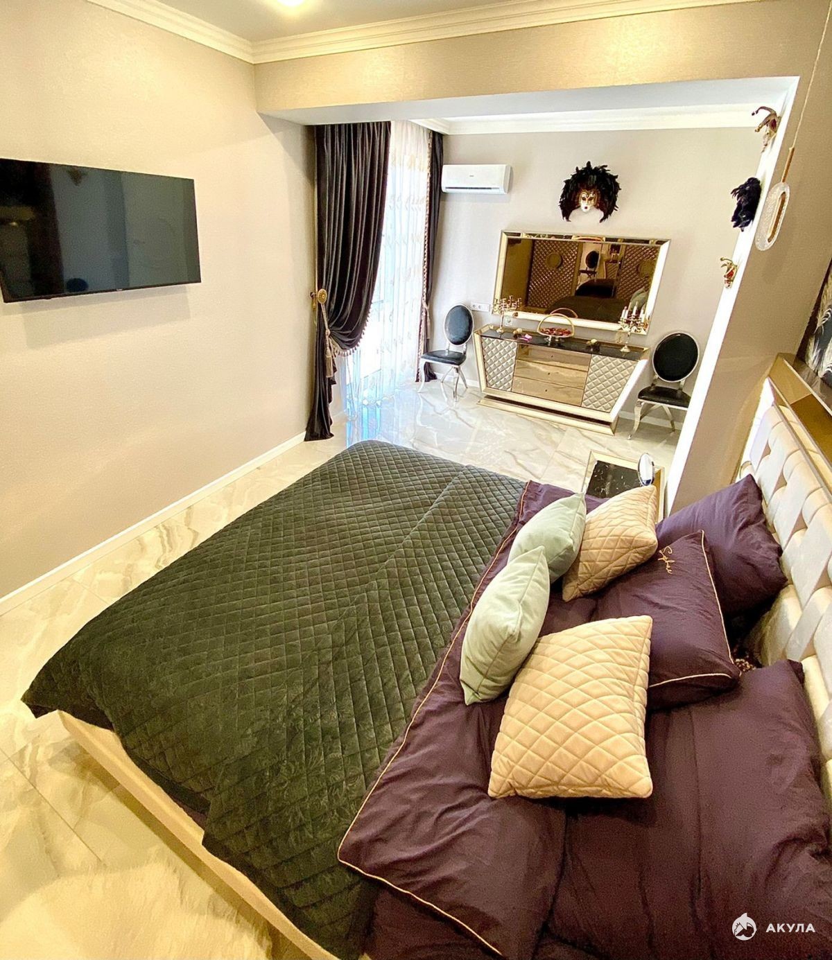 Распланирован в огромную кухню-гостиную-столовую , четыре спальни , кабинет , 3 санузла . На третьем этаже выход на большую террасу с видом на море . Тихое уютное место , для проживания большой , дружной семьи .