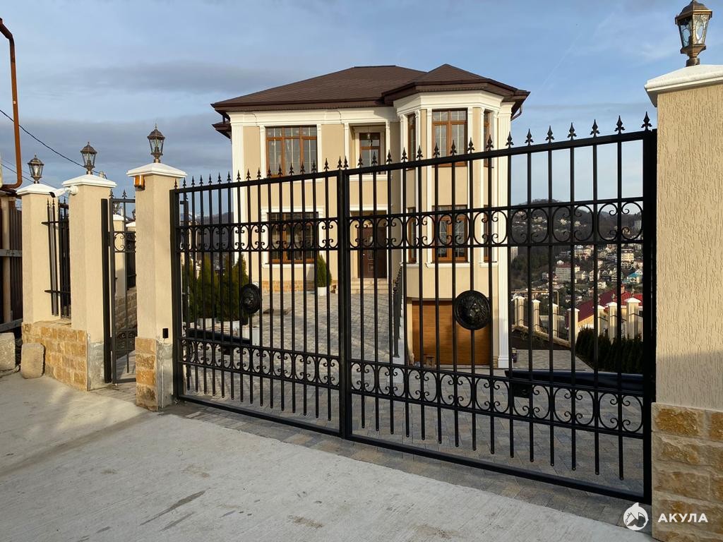 Забор в единой стилистике дома с подсветкой, видеонаблюдение.