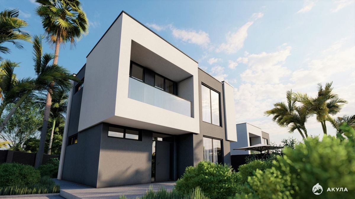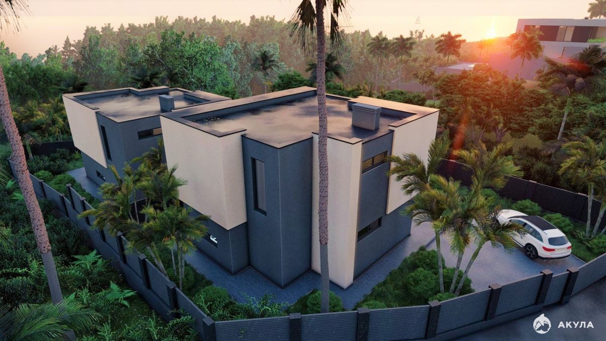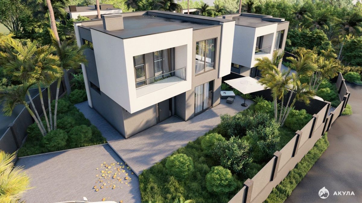 Продам коттедж бизнес-класса в современном стиле Hi-Tech, в кондоминимуме, состоящем из двух домовладений, закрытая, приватная территория, 140 метров до моря.