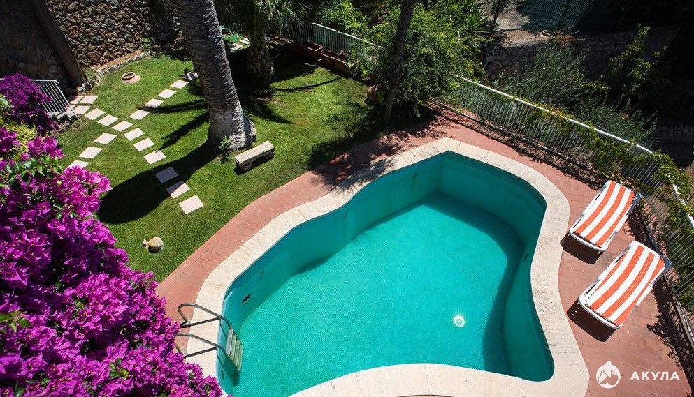 1-ый этаж : 4-е спальни , кухня, столовая , гостиная , гостевой санузел . Гардеробные и санузлы в каждой спальне . Из столовой выход в патио с мангальной зоной и бассейном(S=220 м2).