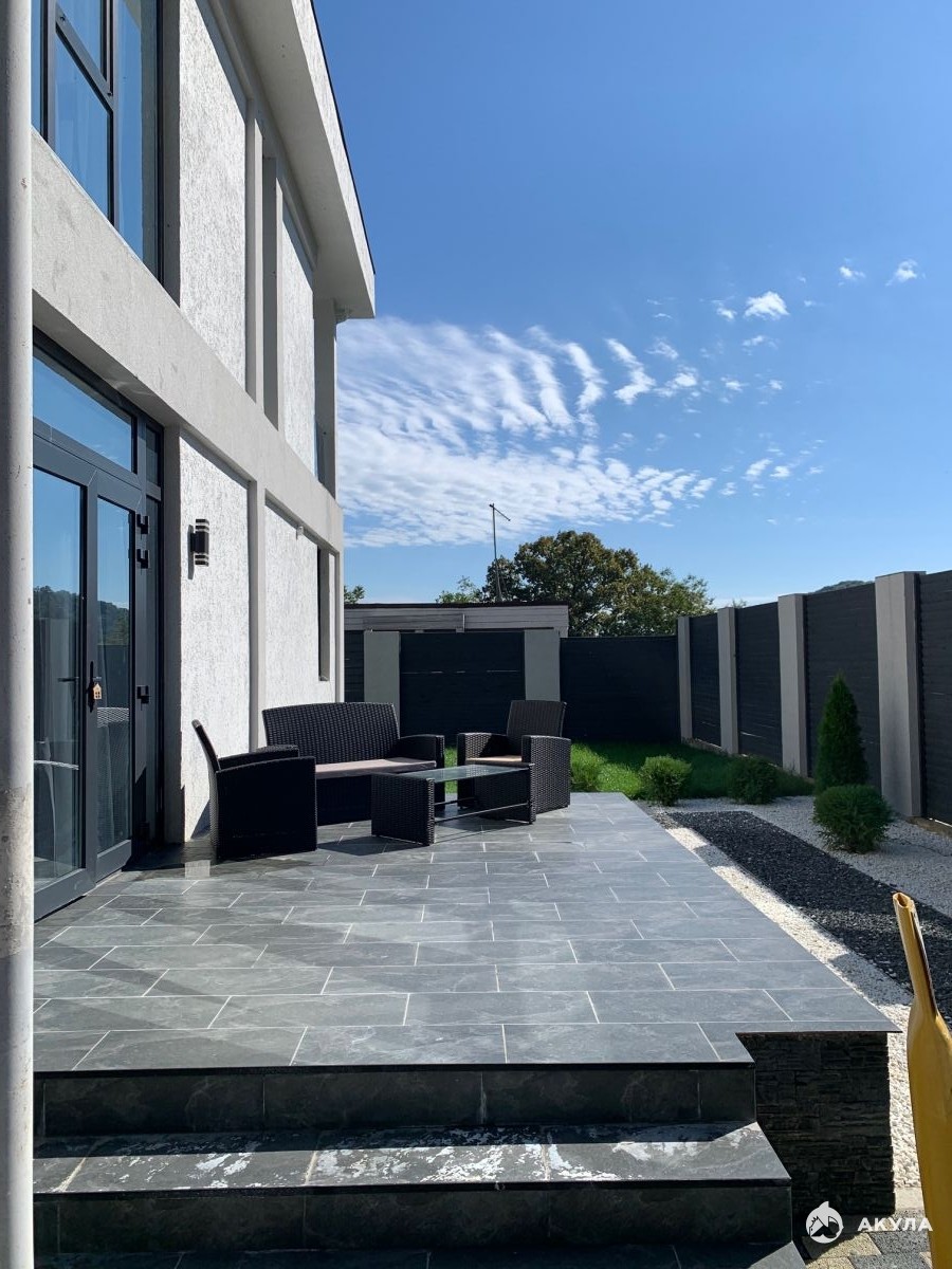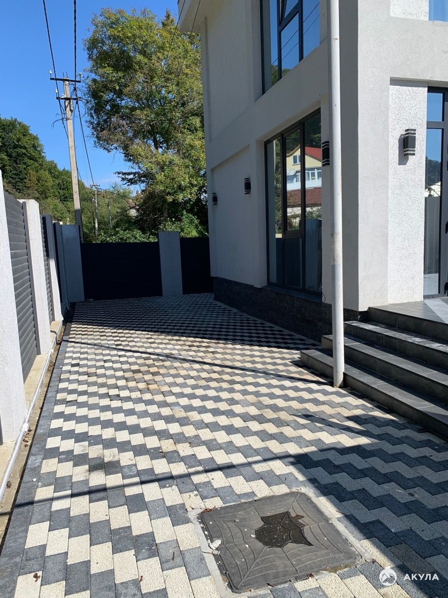 Асфальт прямо до дома . Электрические ворота . Ландшафт.
