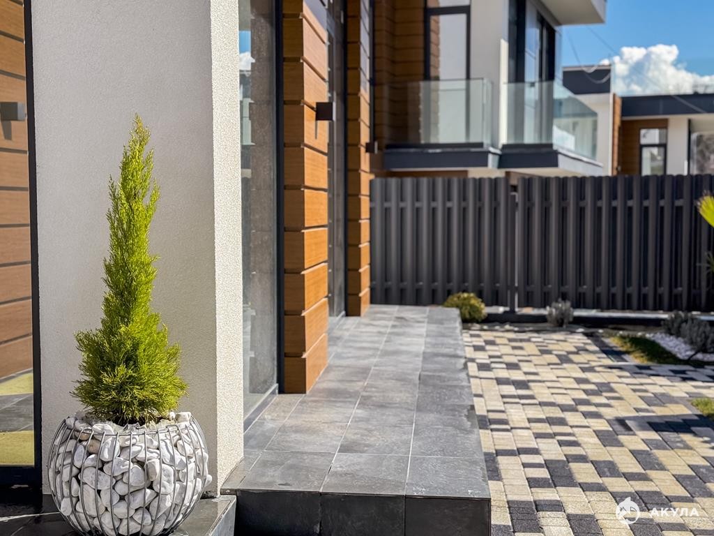 Продам новый современный коттедж в закрытом коттеджном комплексе бизнес класса из 10 жилых домов в едином архитектурном стиле площадью 165 м2 + эксплуатируемая кровля 85 м2 каждый, на закрытой охраняемой территории под видеонаблюдением и ночной подсветкой площадью застройки 40 соток (ИЖС).