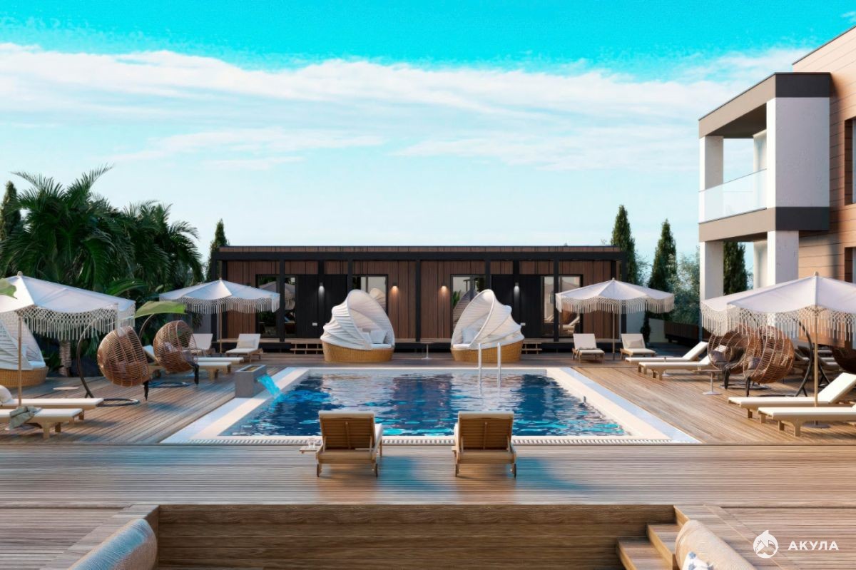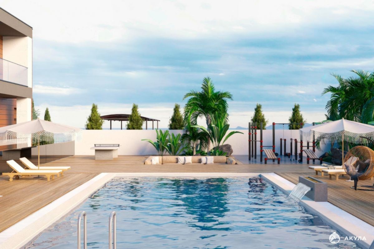 На территории комплекса предусмотрен подъземный паркинг, всесезонный бассейн, детские площадки.