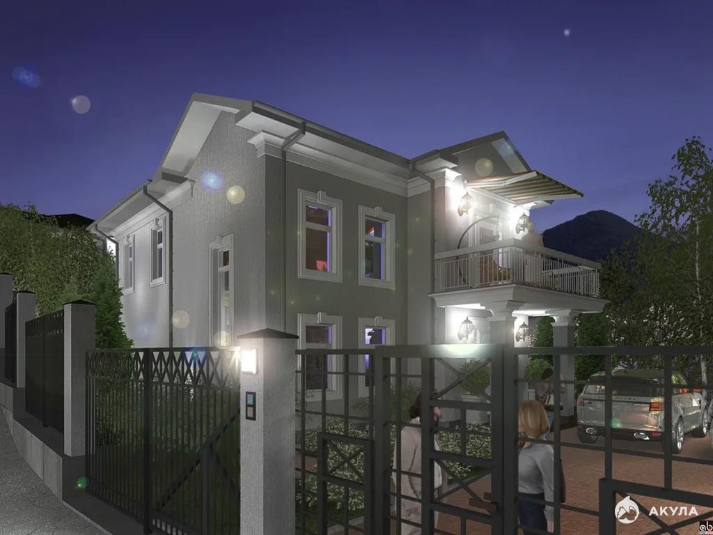 Отделка фасада декоративная штукатурка с элементами гипсовой лепнины. Установлены качественные и дорогие 6 камерные энергосберегающие оконные группы. Крыша восьмискатная, мягкая кровля. Предусмотрена как придомовая парковка, так и гостевая.