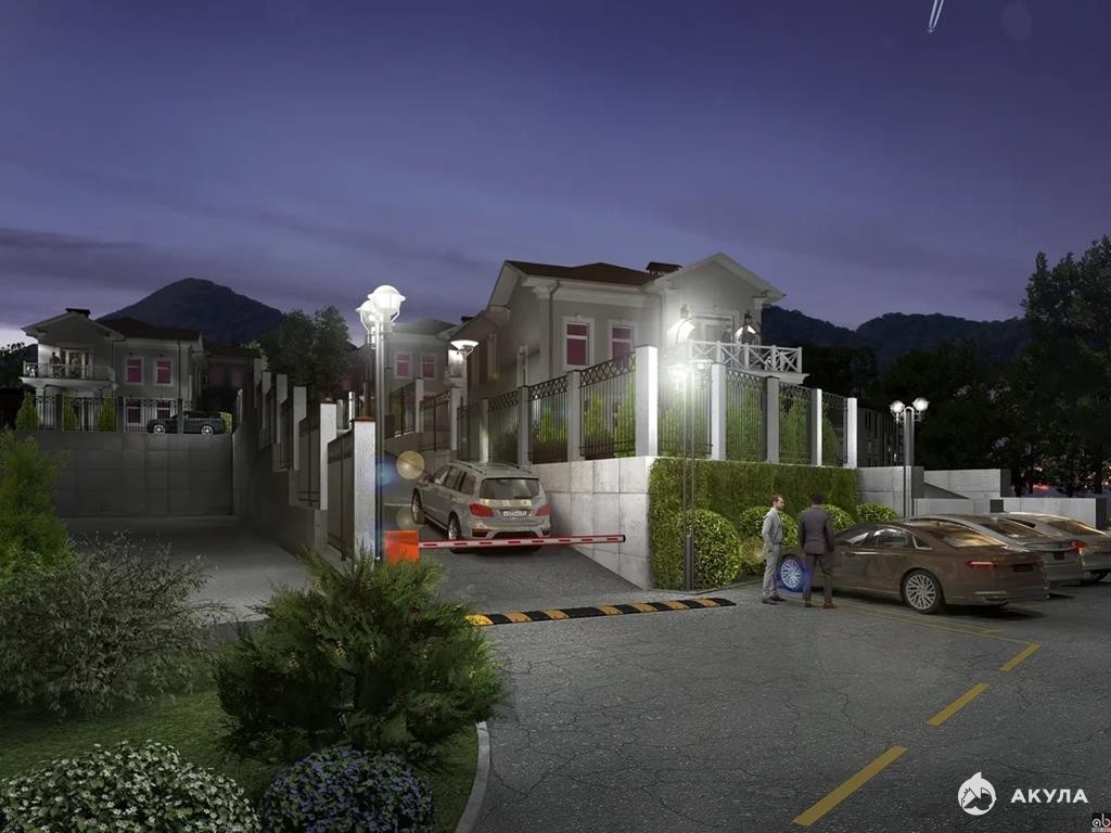Все дома в едином архитектурном стиле, на территории ландшафтный дизайн, КПП .