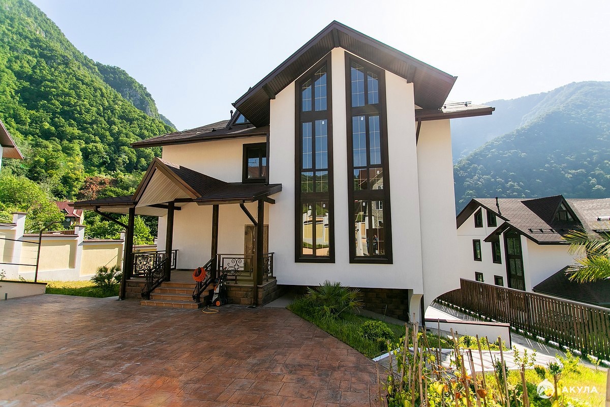 Фасад дома готов. Дом с придомовым участком, ландшафтный дизайн, огороженная территория, круглосуточная охрана, видеонаблюдение, к дому подходит хорошая асфальтированная дорога, бассейн, есть машиноместо.