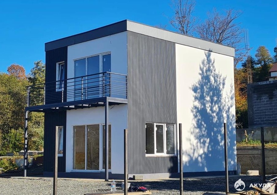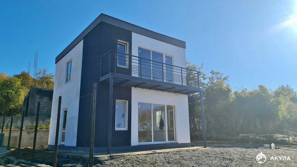 Это современный дом класса комфорт в стиле хай-тек. Дом с панорамными окнами и с удачной планировкой. Фасад - камень с мраморной крошкой и внешним освещением. Предчистовая отделка с теплыми полами.