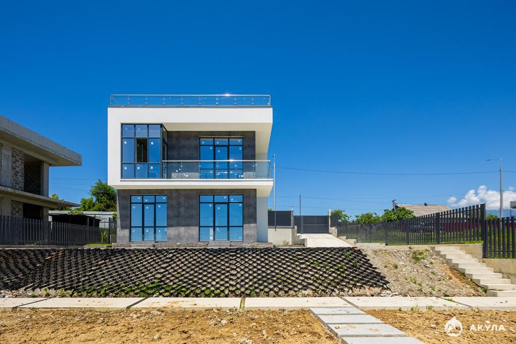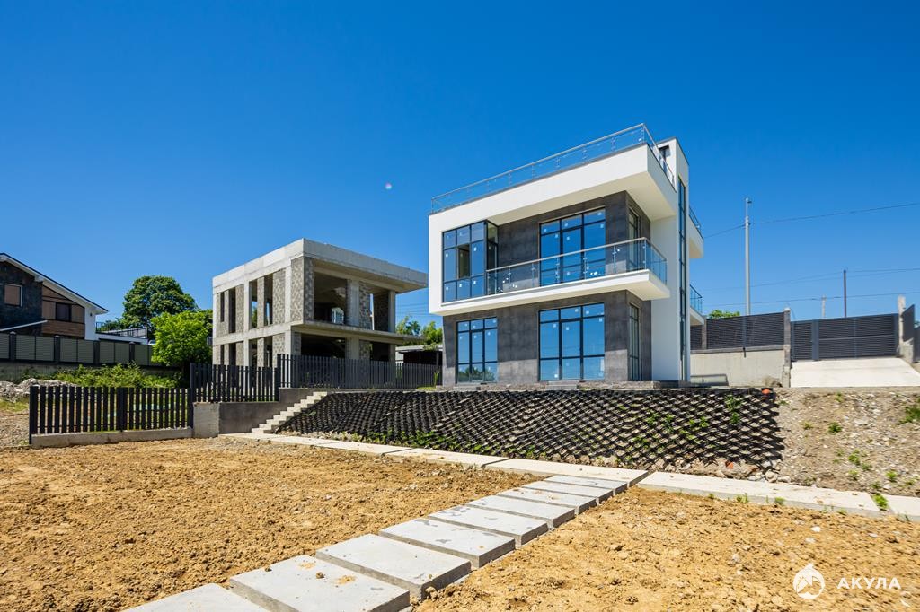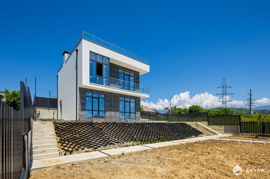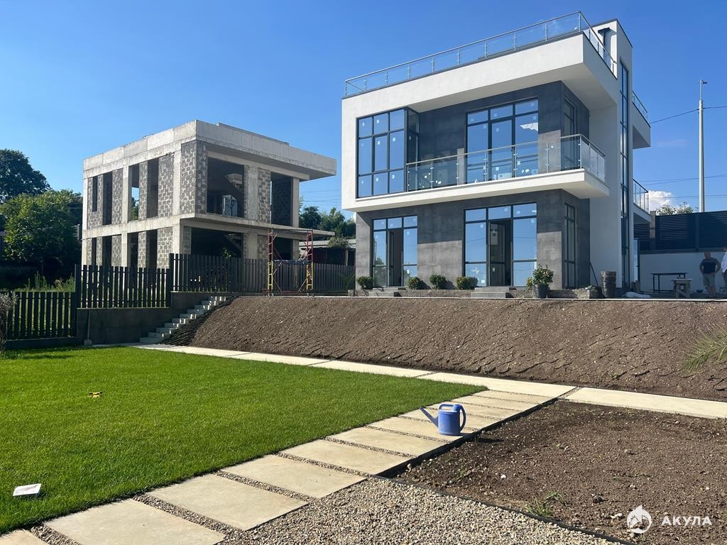 На территории дома предусмотрены зоны отдыха и барбекю. Пляж в 10-и минутах езды, Олимпийский парк 8 километров. Ландшафтное озеленение на участке. При строительстве домов соблюдены все ГОСТы. Под домом и опорными стенами проложена дренажная система водоотведения.