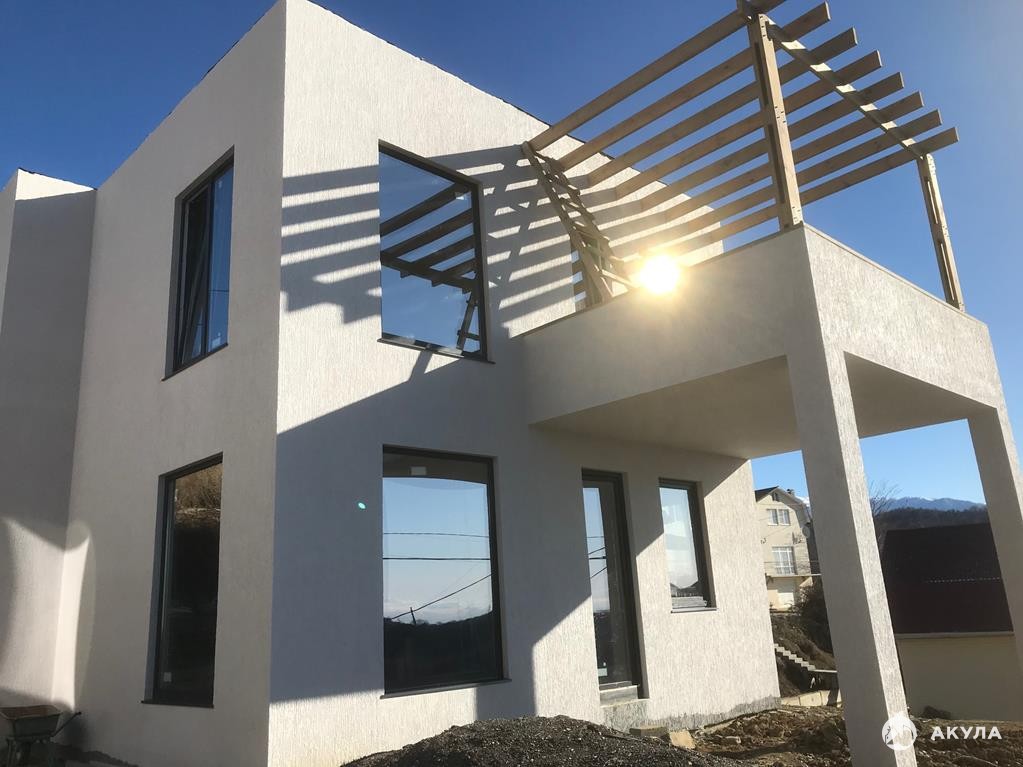 Современное архитектурное решение идеально вписывается в общий ансамбль района, но при этом выделяется на фоне остальных домов. Минималистичной ландшафтный дизайн прилегающей территории отлично дополняет общую картину. За счет того, что коттедж расположен на возвышенном участке, из его окон открывается очень красивый вид на горы и панораму самого микрорайона. Очень много зелени и солнца. Здесь вы сможете в самом полном объеме насладиться благами курортного города!