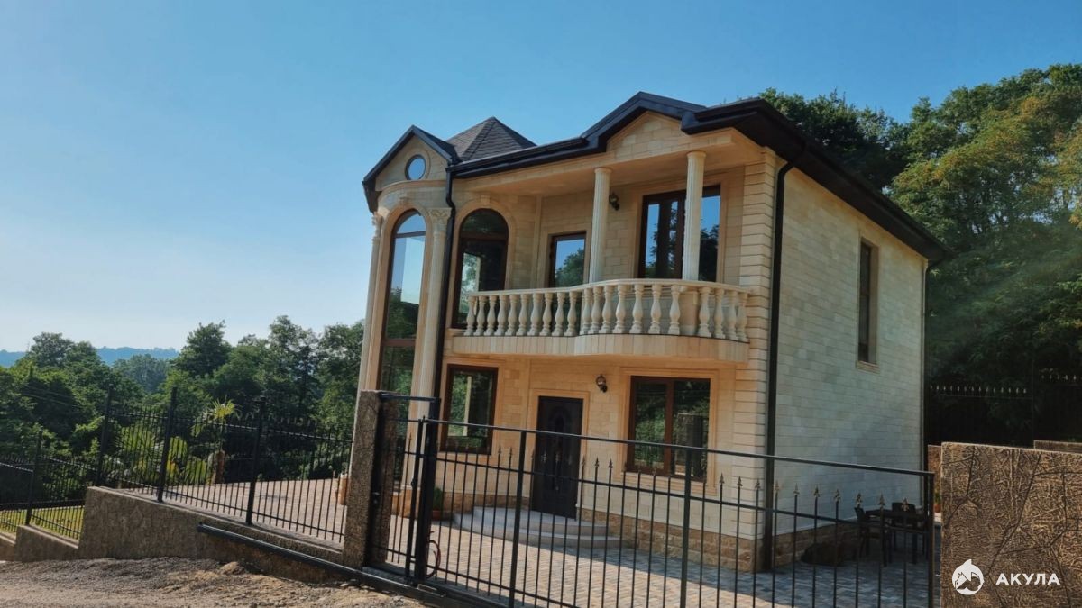 Фасад дома: дагестанский камень, монолит каркас, заполнение керамзитоблоком. два полноценных перекрытия.