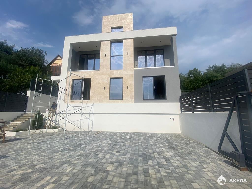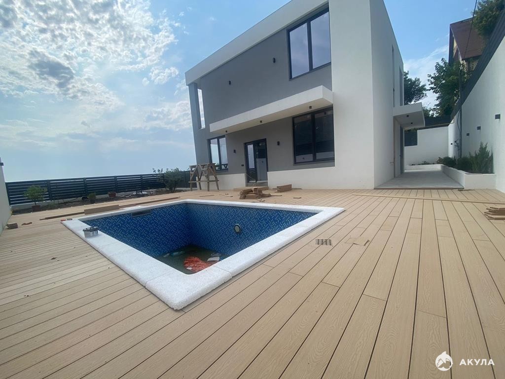 Дом бизнес-класса площадью 280 кв.м. на ухоженной территории в 4 сотки с ограждением. Коттедж спроектирован с учетом современных тенденций и удобства проживания. Особенностью является панорамный вид на море, который открывается из каждого дома. В распоряжении жильцов будет просторный бассейн с подогревом и противотоком, а также электрические ворота для контроля доступа. Высота потолков в доме составляет 3.20 метра, что создает ощущение пространства.