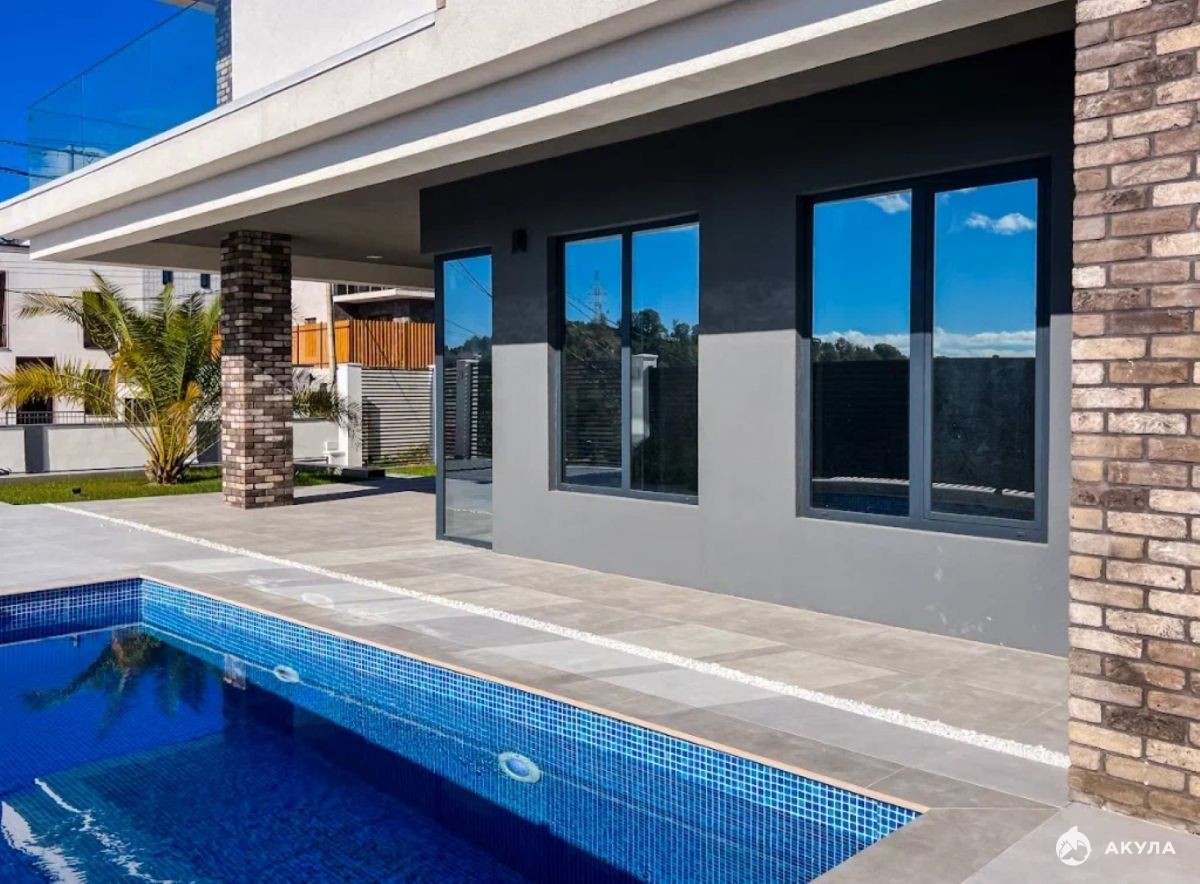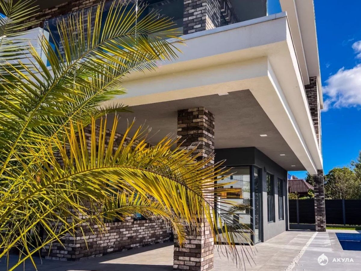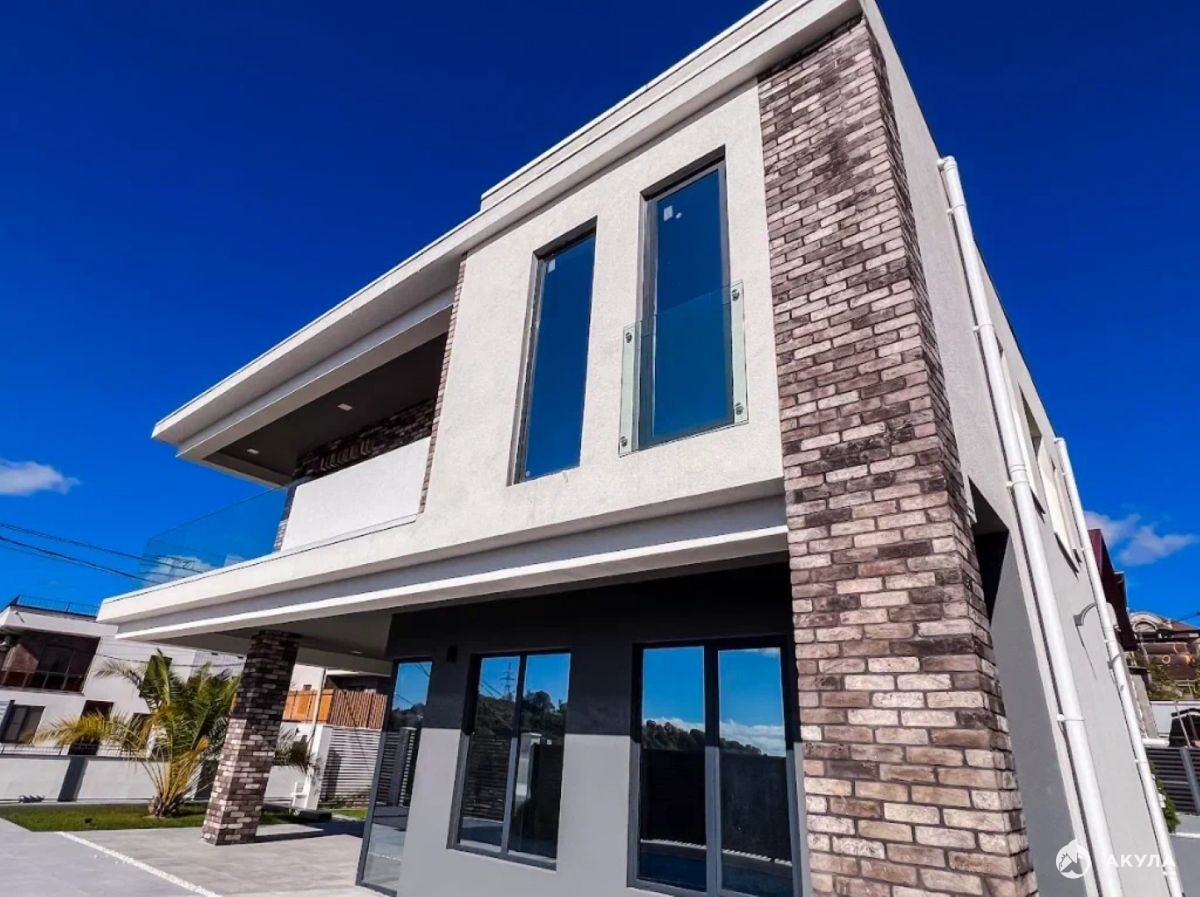 Продается коттедж в Адлере в коттеджном посёлке, ваша загородная жизнь вблизи городской инфраструктуры. Архитектура проекта выполнена в современном стиле. Фасад комбинированный - декоративная штукатурка и клинкерный кирпич. Остекление - алюминиевый панорамный профиль, которое наполняет весь дом естественным светом.