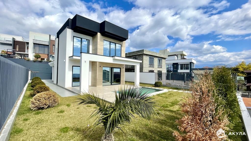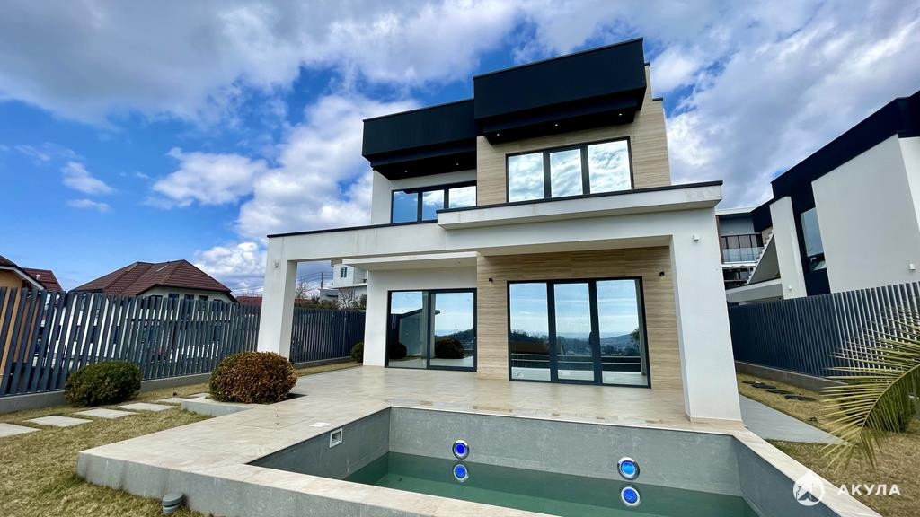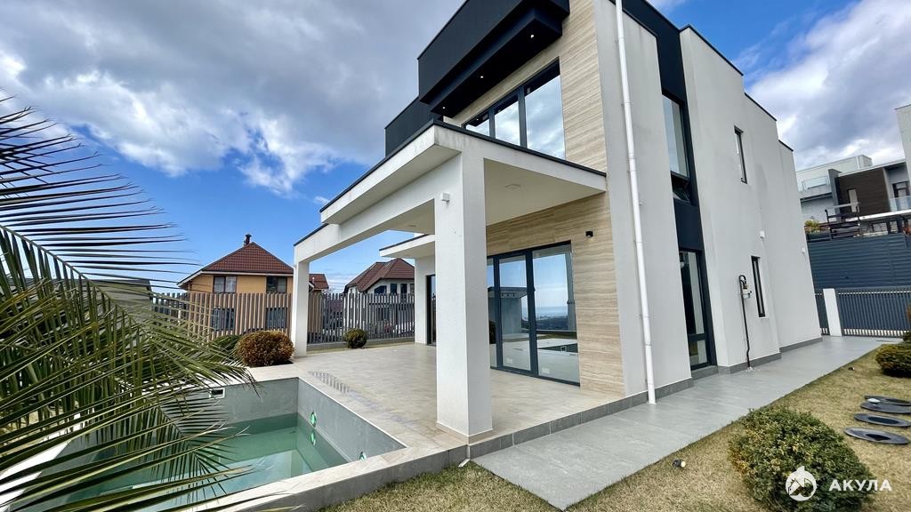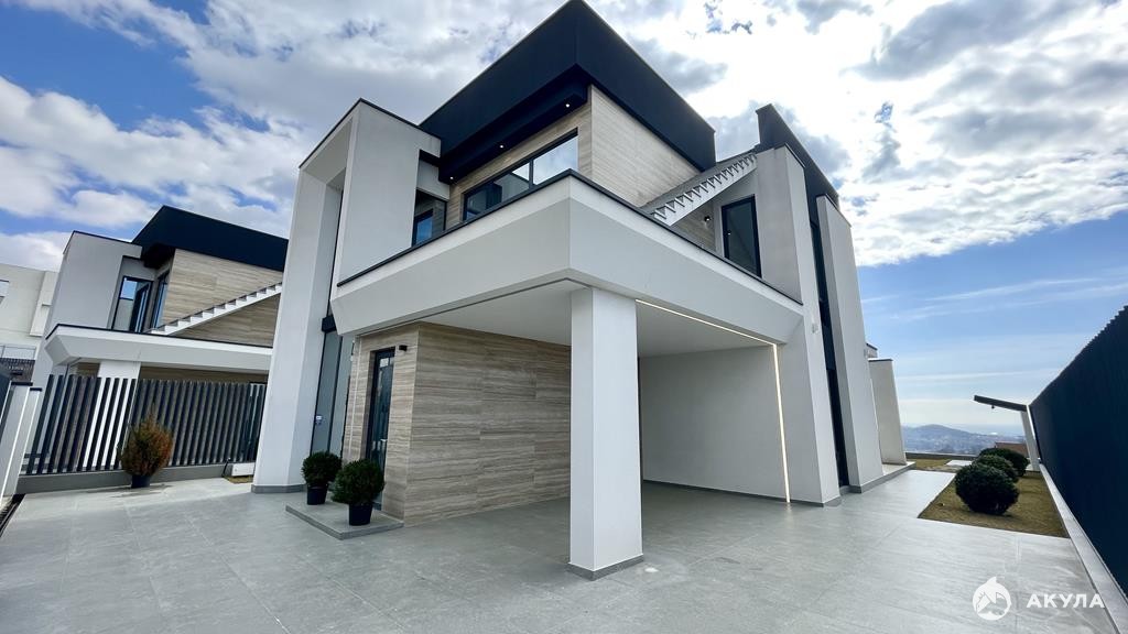 Площадь дома 288 квадратных метра, площадь земельного участка 4 сотки. Продуманное планировочное решение, а также прекрасные видовые характеристики. Из окон дома отлично просматривается панорама уютных городских улиц, субтропическая зелень и Фишт. Коттедж располагает индивидуальным бассейном и гаражом для автомобиля.