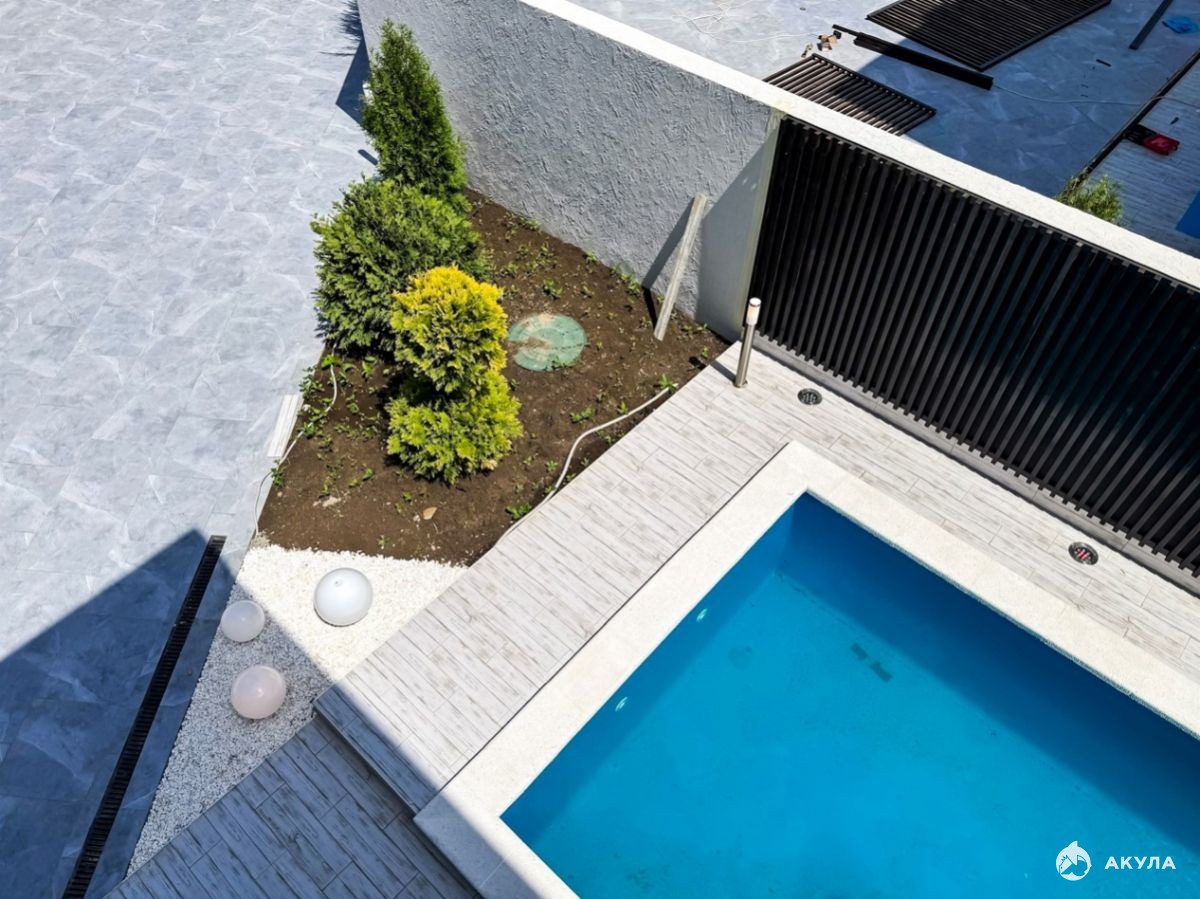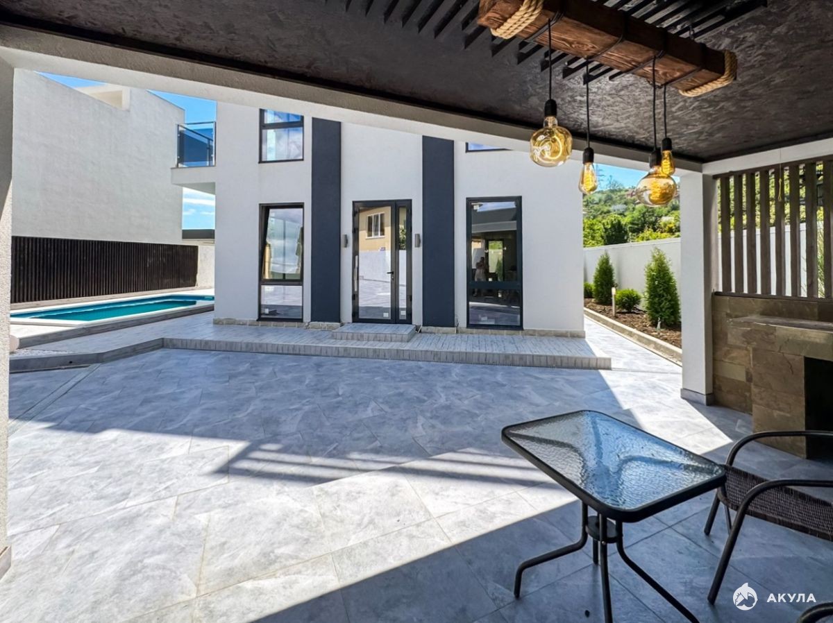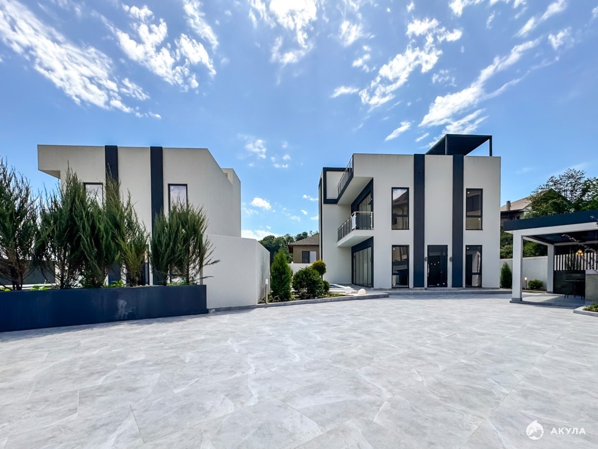 Архитектура дома выполнена в самом востребованном стиле – хайтек. Фундамент выполнен на сваях, все работы производились профессиональной строительной компанией с соблюдением всех норм строительства и геодезии.