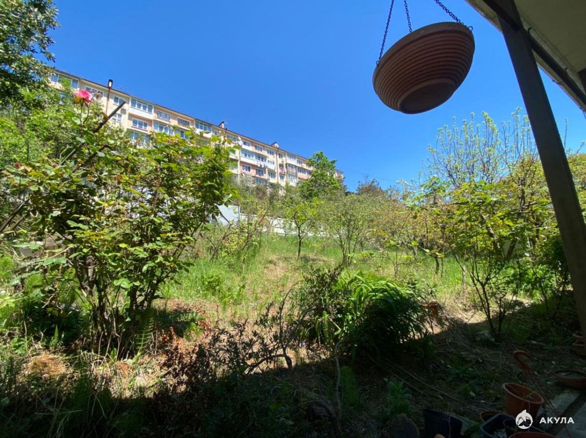 Большой огороженный участок с плодовыми деревьями и с зоной барбекю.