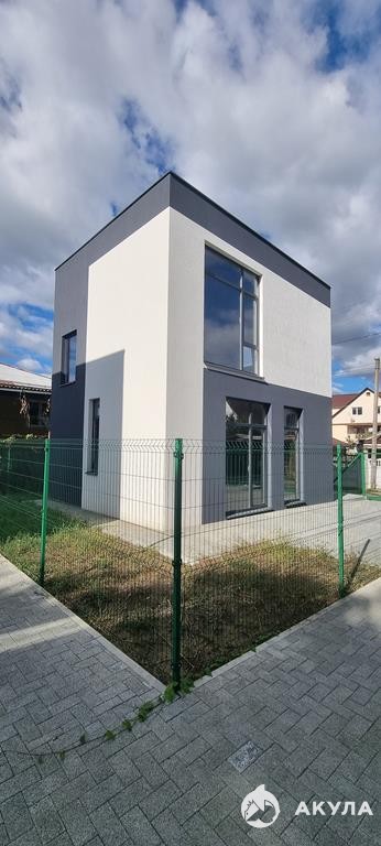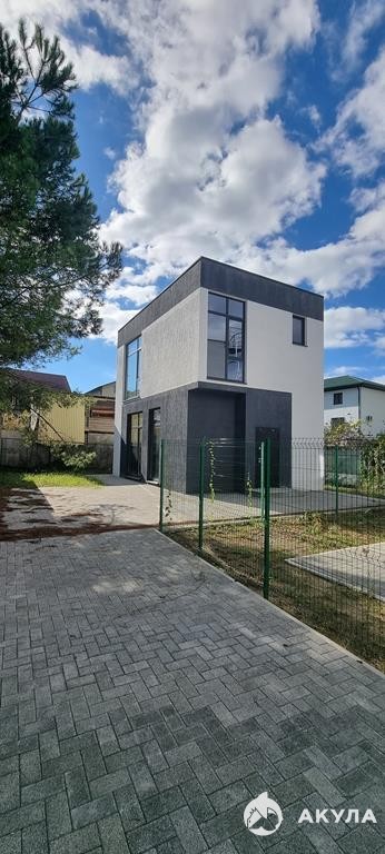 Современный двухэтажный дом с огражденной территорией и великолепным ландшафтным озеленением.
