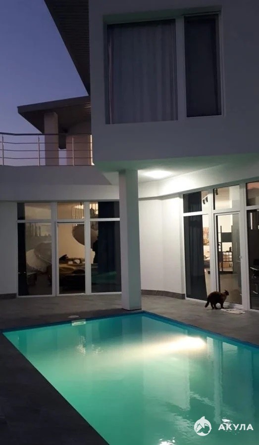 В доме установлен лифт с возможностью подъема с гаража на 1 этаж и выходом на эксплуатируемых кровлю. Отопление - водяные теплые полы. Тепловой насос для нагрева ГВС, солнечные коллектора для нагрева ГВС, электроэнергия три фазы- 380к Вт; Вода – скважина, автономная канализация ЛОС. Гараж на три машины. Бассейн, зона барбекю, эксплуатируемая кровля. От центра Хосты 5 минут на автобусе.