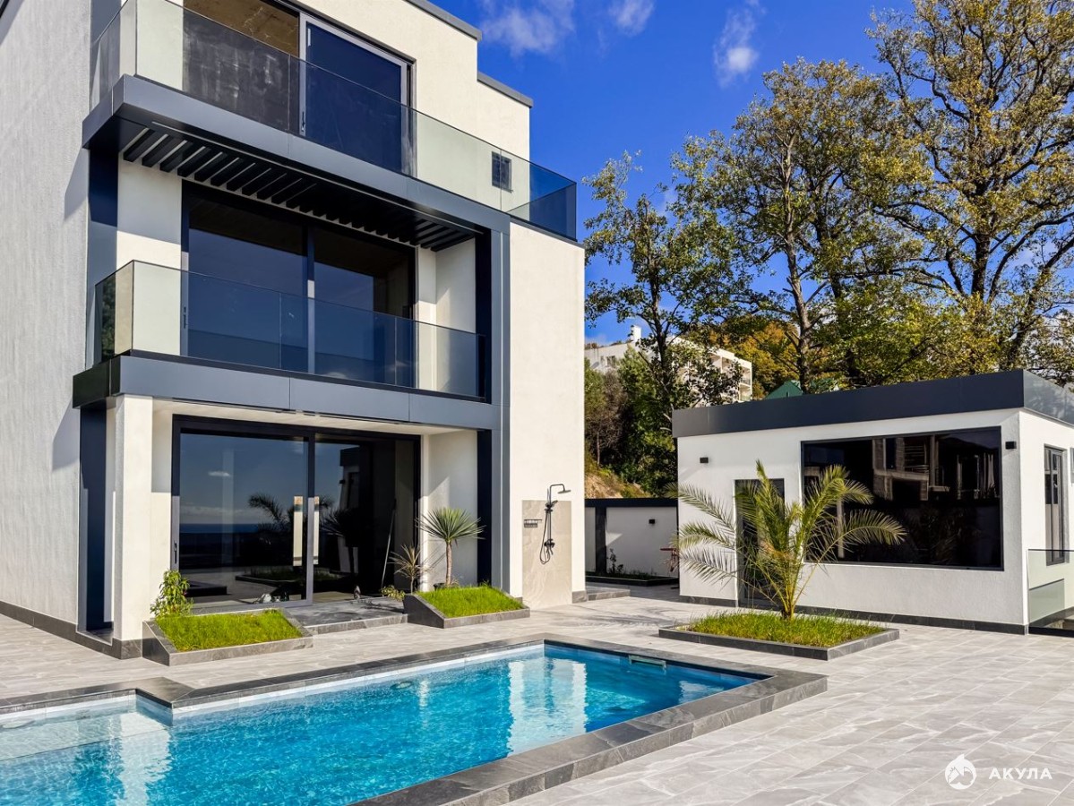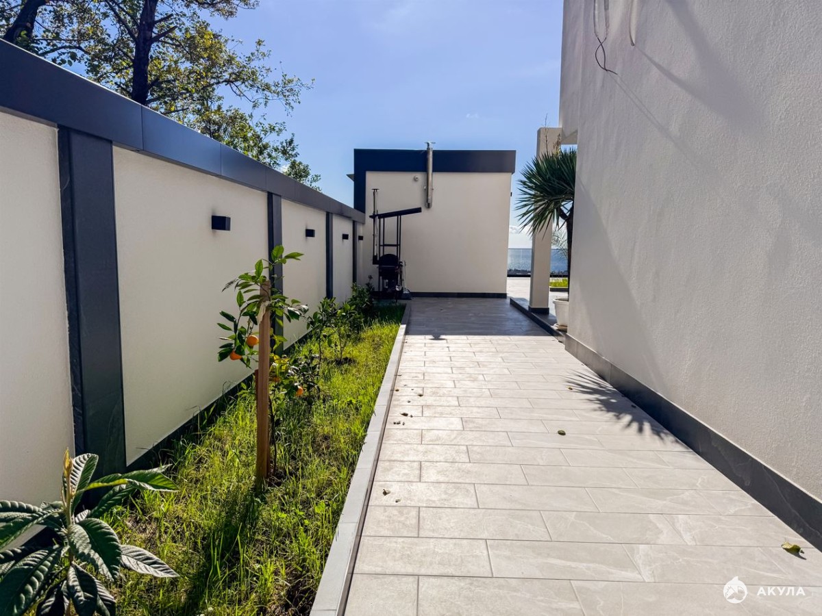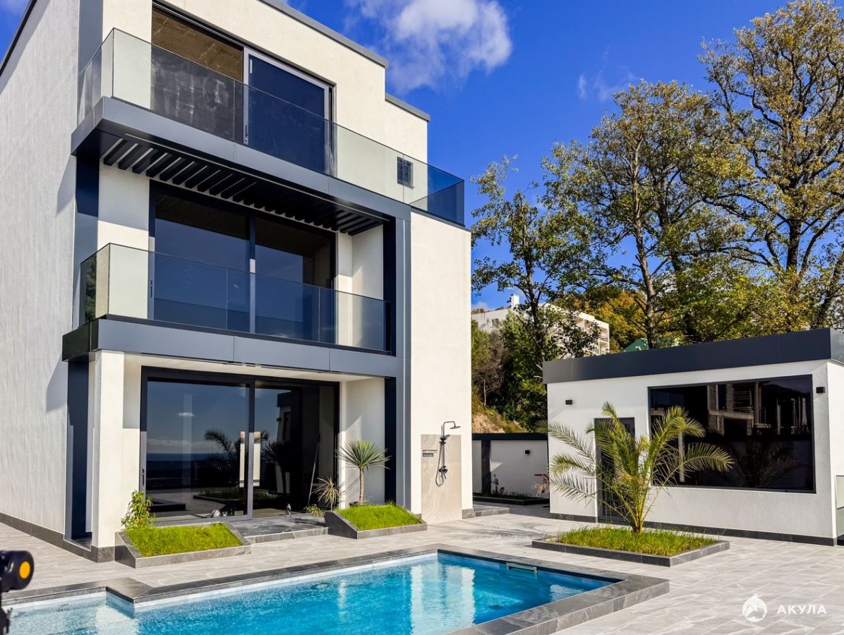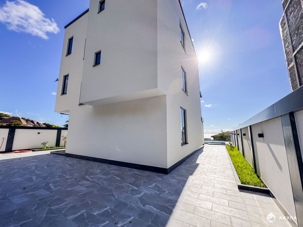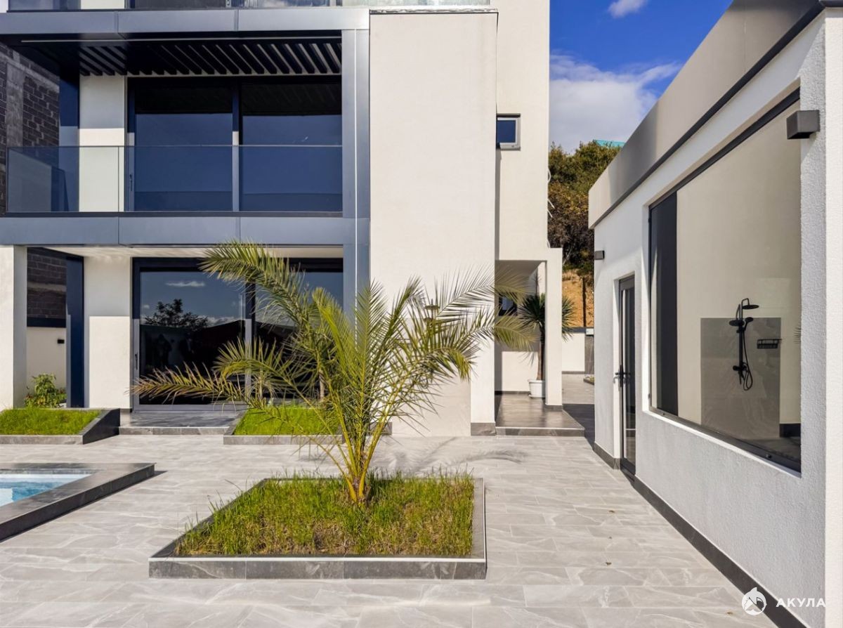 Дом выполнен в современном архитектурном стиле, сочетающем эстетику и функциональность. У дома функциональная планировка, сочетающая удобство проживания и отдыха для всей семьи. Алюминиевый панорамный профиль остекления обеспечивает максимальную инсоляцию и позволяет наслаждаться видами из любого уголка дома.