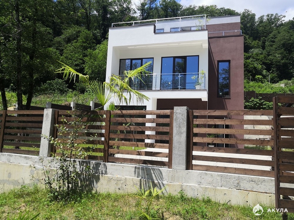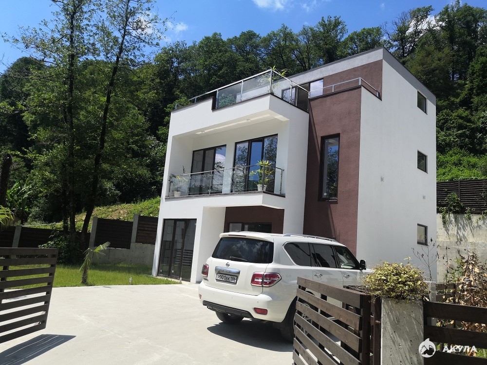 Современный 3-х этажный коттедж в стиле Хай -Тек. На втором этаже балкон, на третьем - терраса.Удобное расположение до Олимпийского парка (Сириус), пляжи Имеретинской набережной - 7 мин, до Аэропорта - 5 мин; до курорта "Красная поляна" - 20 мин; до центра Адлера - 10 мин., до центра Сочи - 30 мин. Находится в поселке из трех домов, имеет отдельную территорию, удобный заезд, огорожен забором. Ограждение выполнено из монолитной конструкции и обработанного дерева, на долгие годы. Территория облагорожена пальмами и многолетними деревьями. Коттедж выполнен с панорамным остеклением. Фасад отделан декоративной штукатуркой "Короед". Отделка черновая . На придомовой территории имеется место для стоянки автомобиля, барбекю или зоны отдыха. Коммуникации: электричество, скважина на 3 дома, канализация септик.Номер объекта: #5/548872/11901