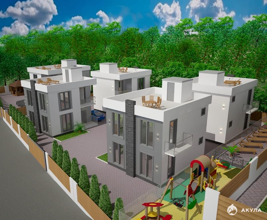 Фасад дома готов. Придомовая территория озеленена, зона отдыха, детская площадка, ландшафтный дизайн, есть парковка.