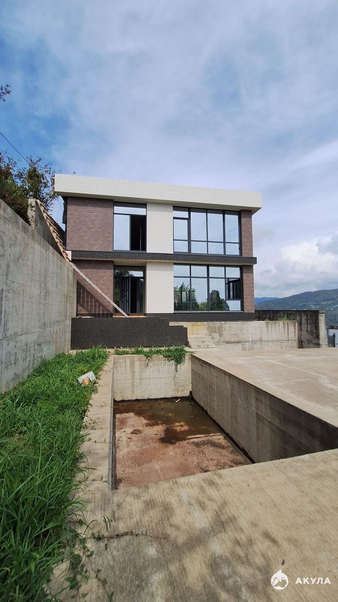Дом полностью монолитный , как и все строения на участке . Фасады японские фиброцементные панели с гарантией 50 лет .