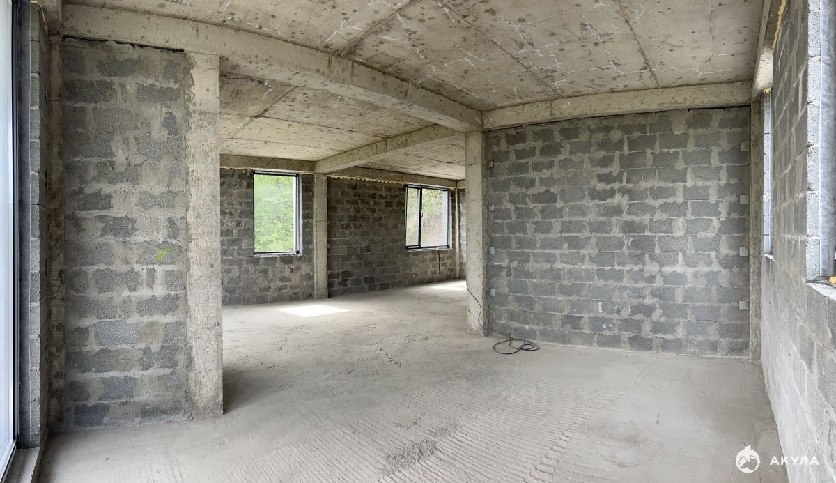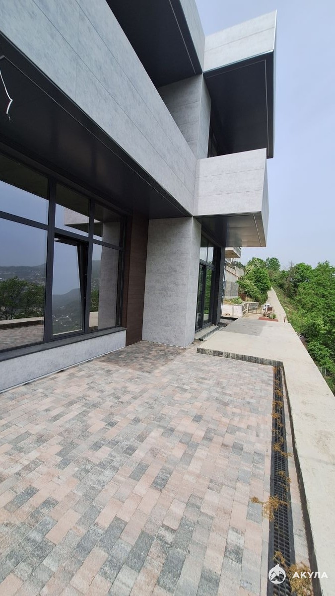 На первом этаже дома расположены прачечная, санузел и просторный зал, совмещенный с кухней, создающий уютную атмосферу для семейных посиделок. Второй этаж предлагает три комнаты с двумя балконами, откуда открывается панорамный вид на море и горы. Также есть выход на эксплуатируемую кровлю, идеально подходящую для лаунж-зоны или места для отдыха.