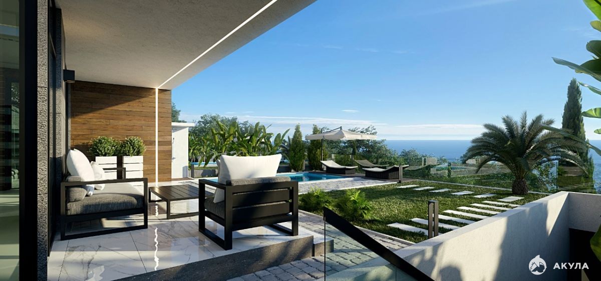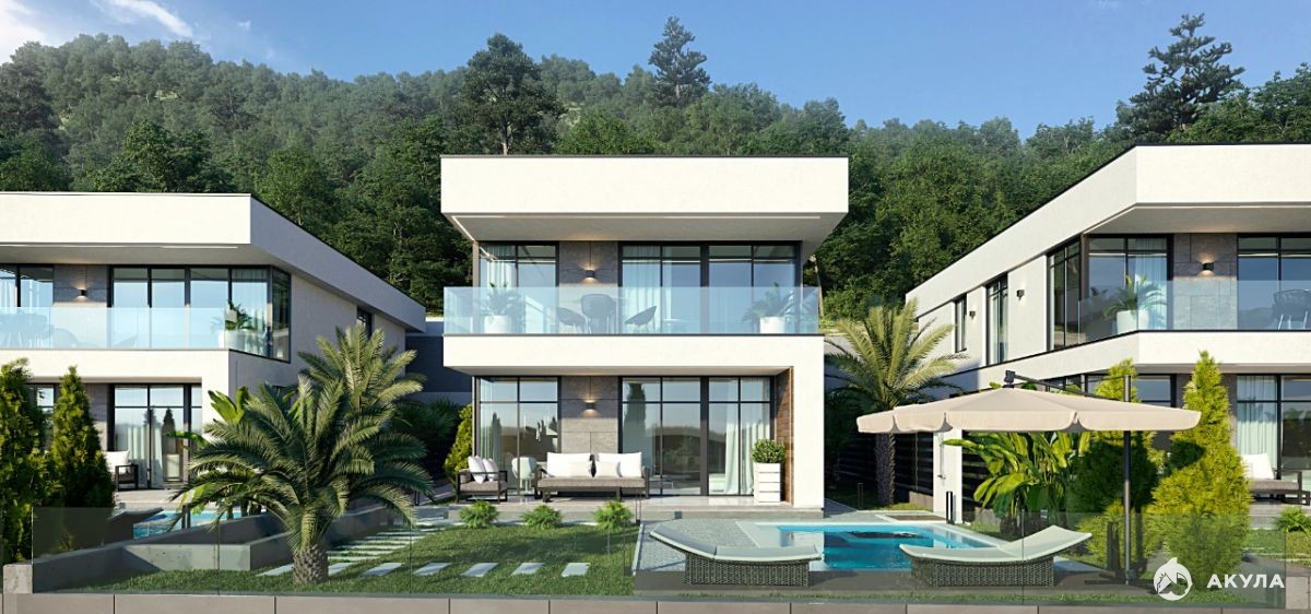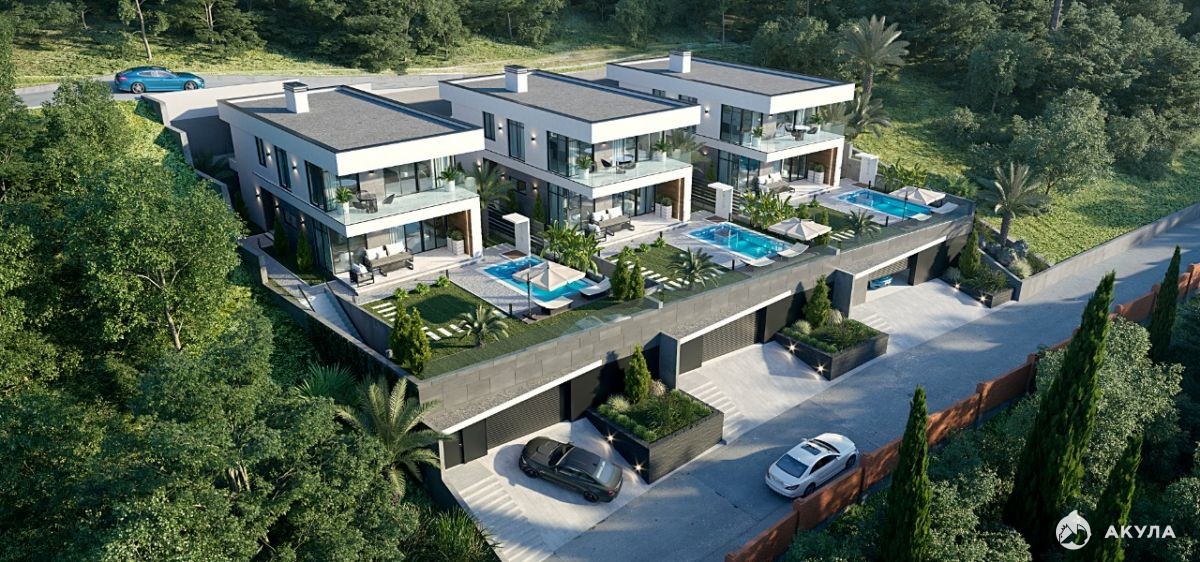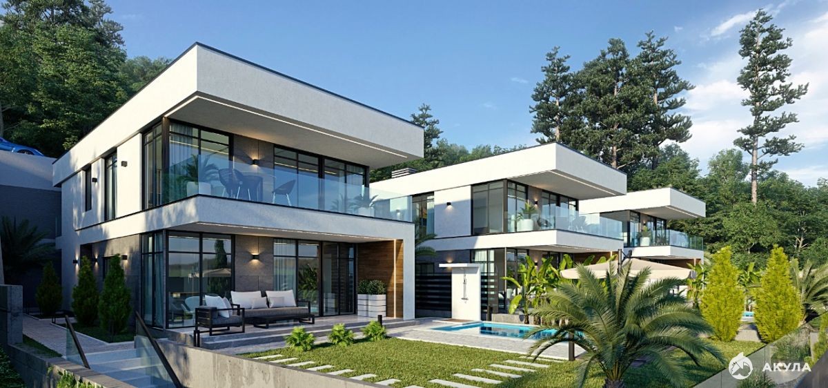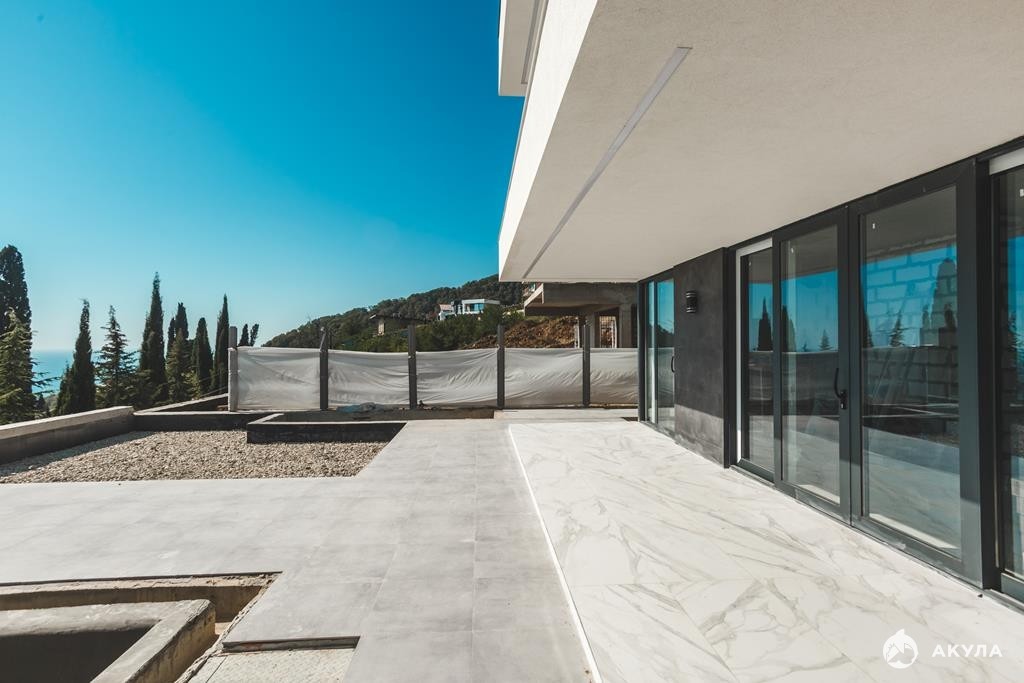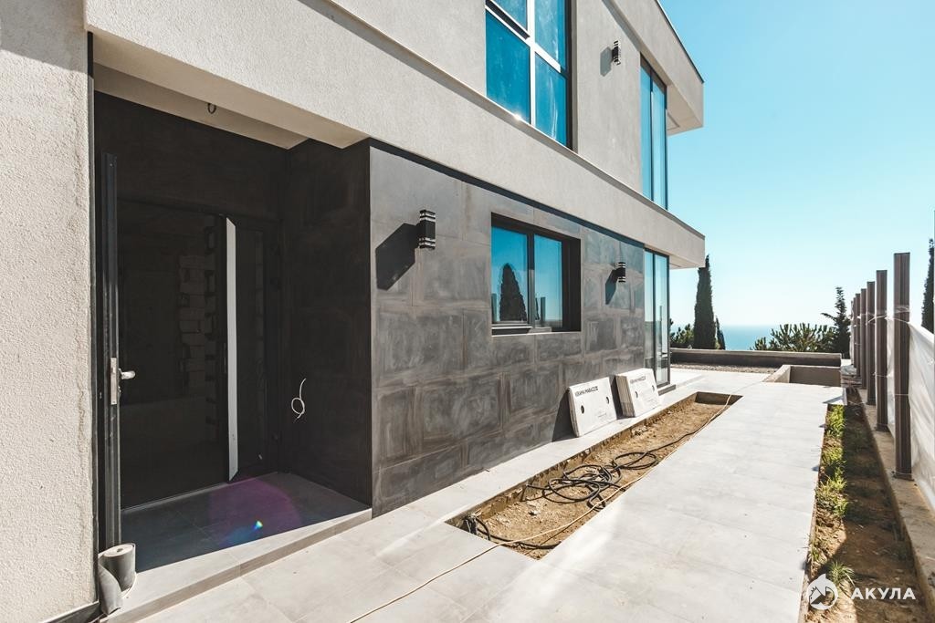 Фасад дома готов. На территории подогреваемый бассейн и зона отдыха, ландшафтный дизайн с озеленением территории. Паркинг: гараж на 2 автомобиля.