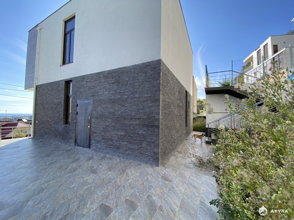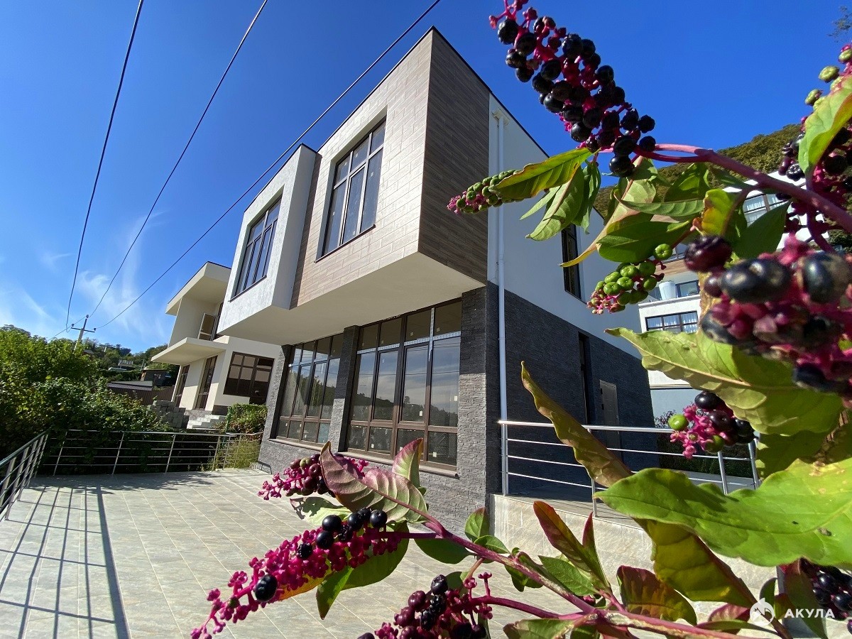 На продажу выставлен новый стильный современный дом с красивыми видовыми характеристиками на горные вершины, море и город.