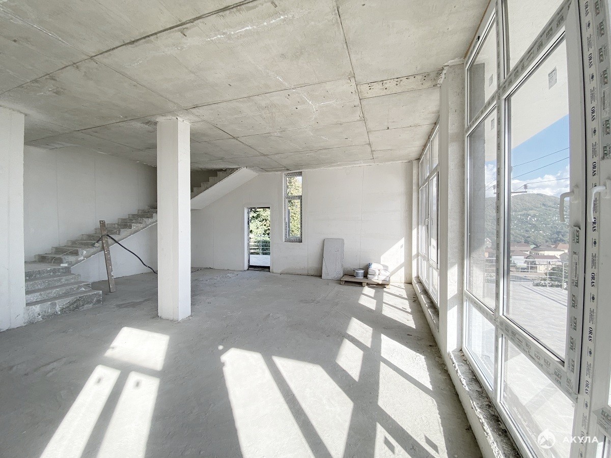 Площадь составляет 160 кв.м., без внутренней отделки, что позволит распланировать пространство и выполнить ремонт на свой вкус. Установлено панорамное остекление, высокие потолки, удобная лестница.