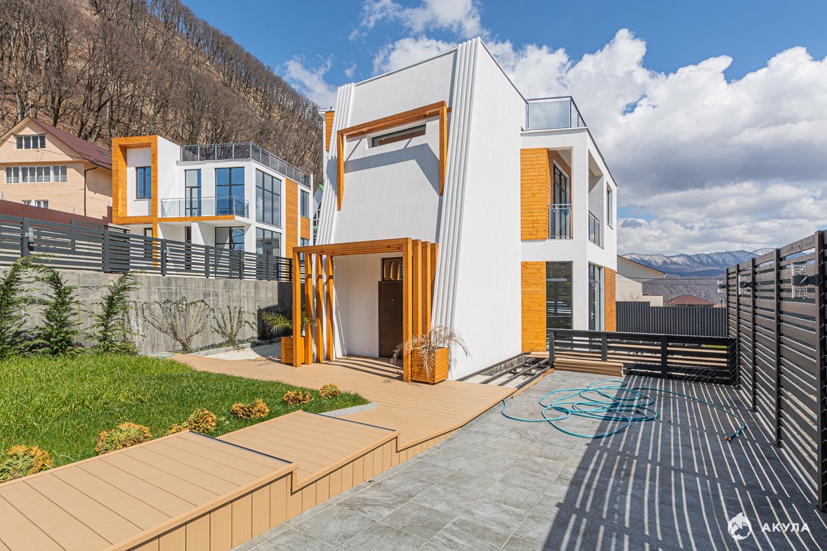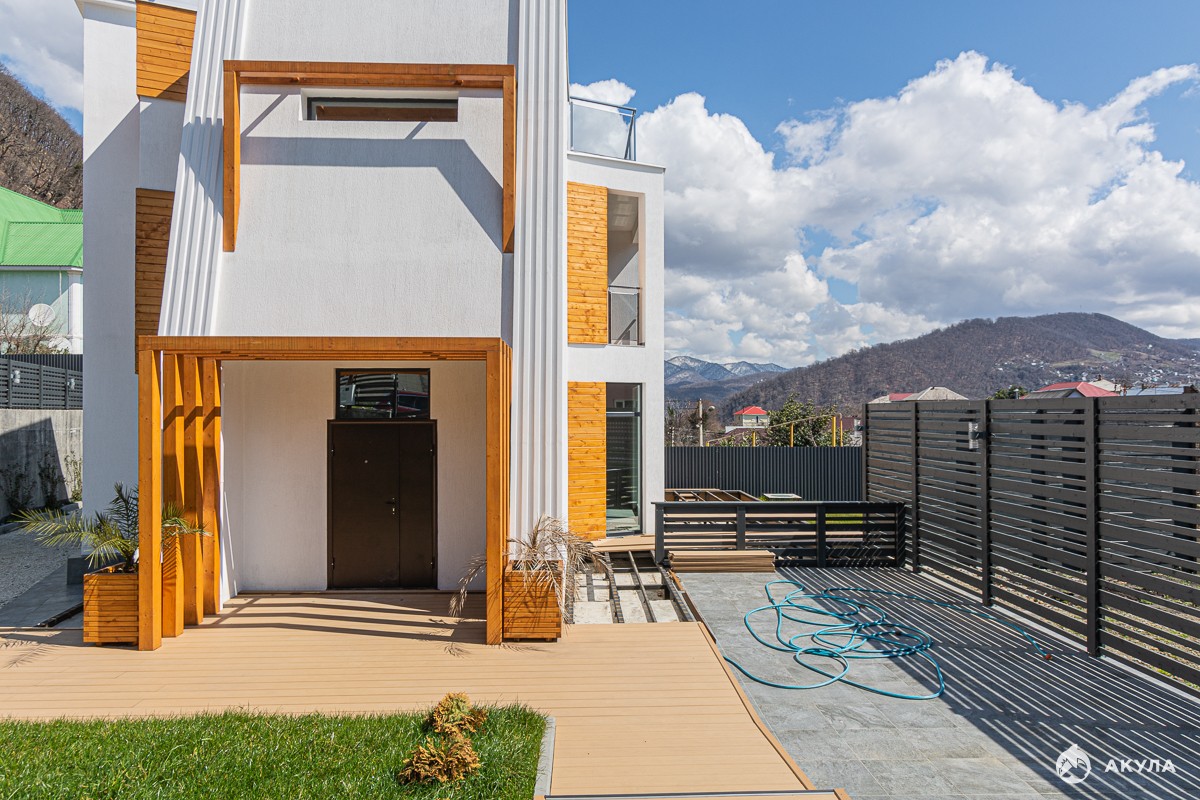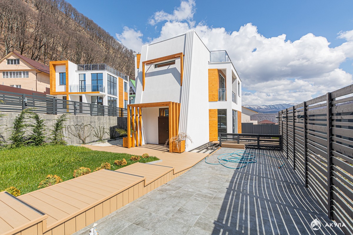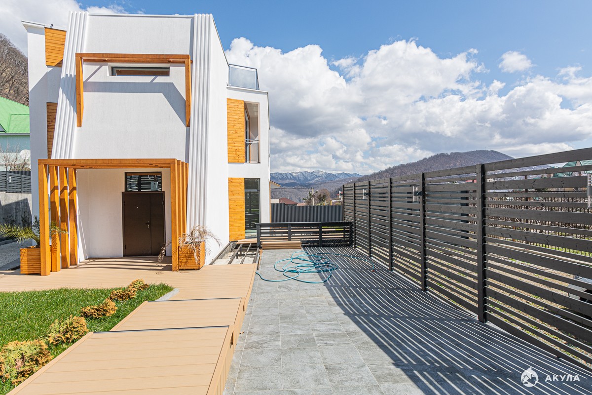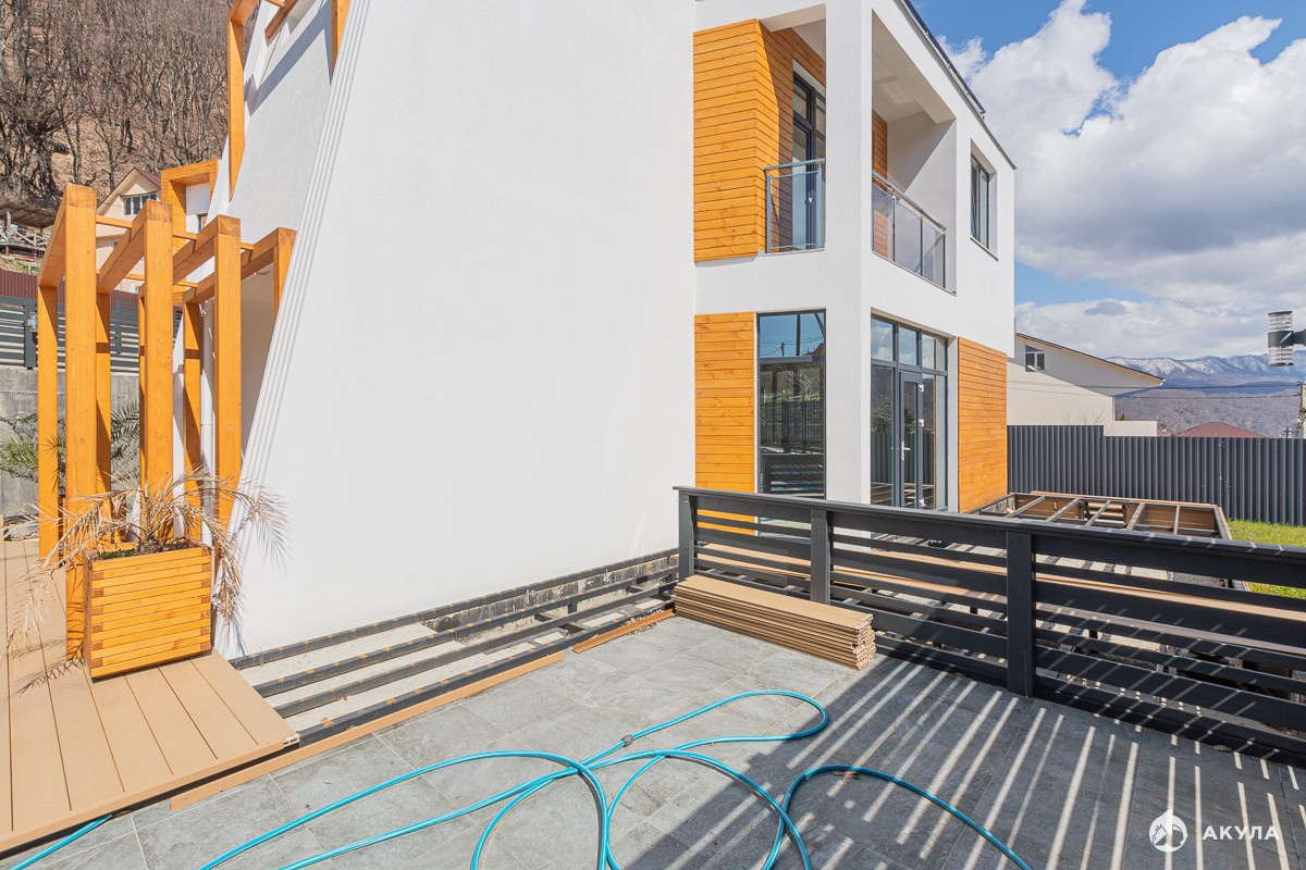 Дом в чистовой отделке , террасы, балконы с великолепным видом на море , бассейн, ландшафтное озеленение, все коммуникации заведены .