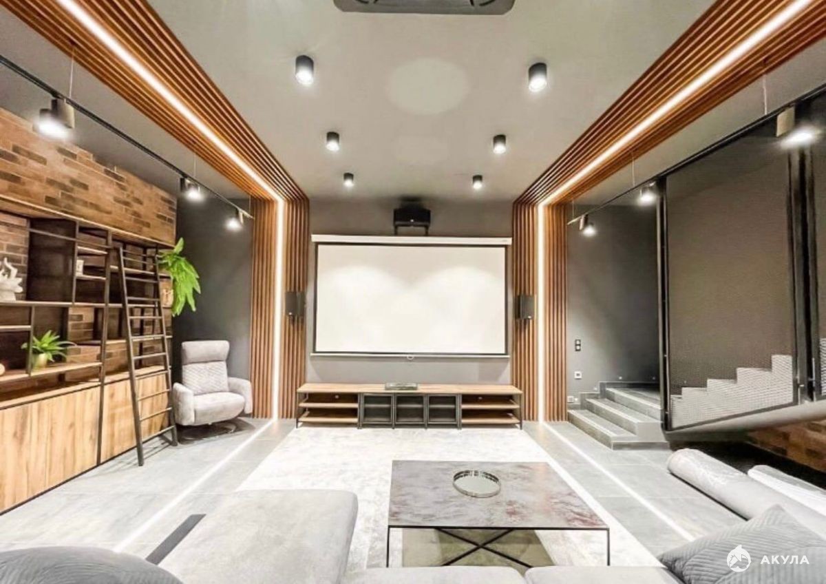 Дополнительное здание 150 кВ м, в нем расположилась сауна из канадского кедра с брикетами гималайской соли, комната отдыха, летняя кухня и место притяжения домашний кинотеатр с аккустической и караоке системой.