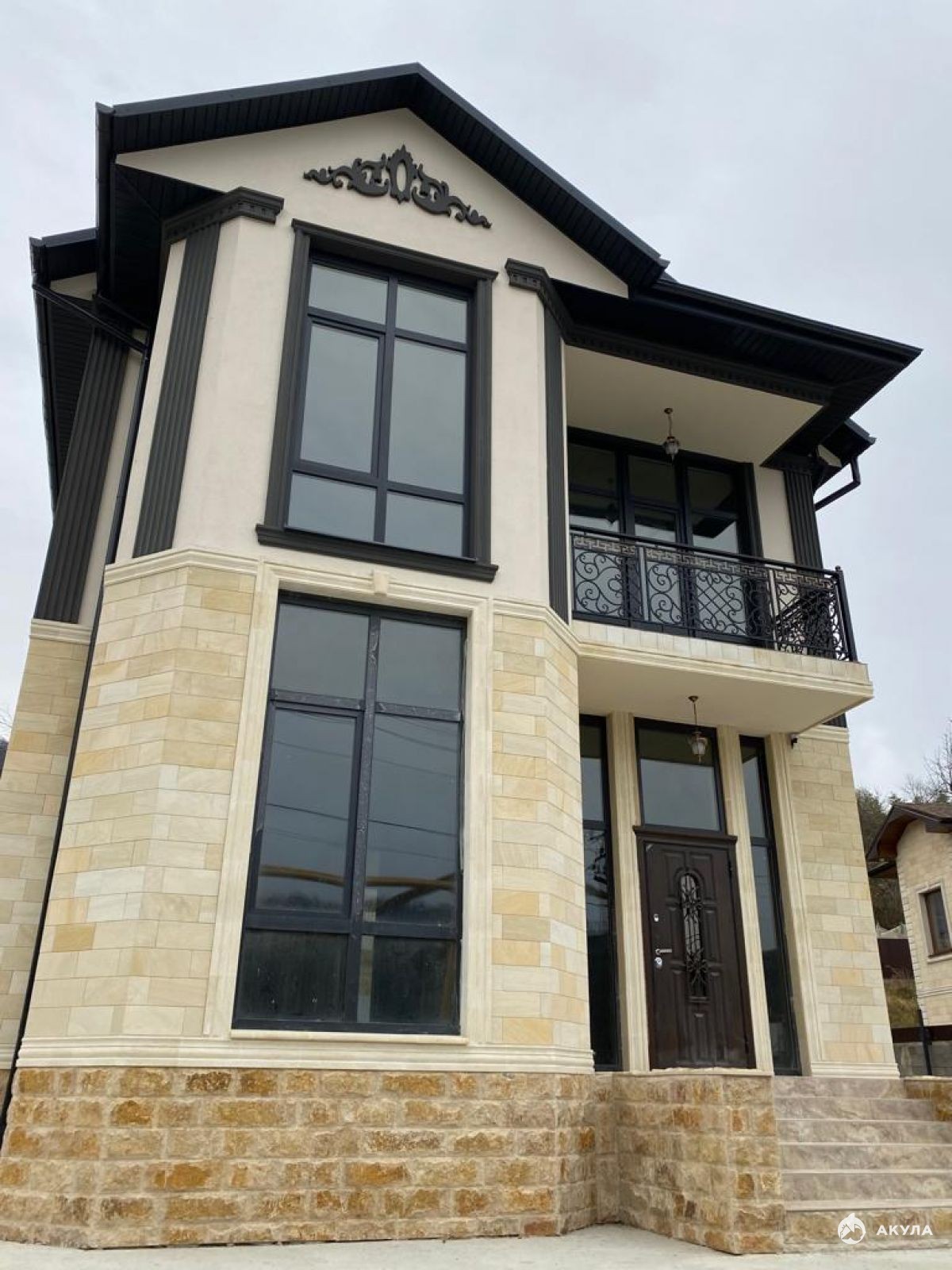 В продаже новый дом в живописном месте с видом на горы, в 5 минутах от п. Дагомыс и 20-ти минутах от центра Сочи. Архитектура дома выполнена в